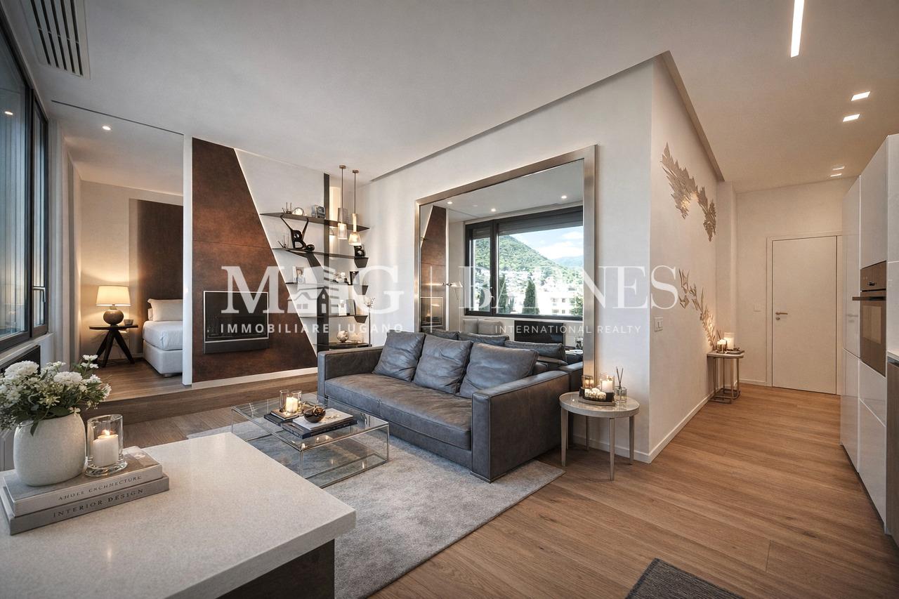 New, perfect, contemporary. A refined 2.5-room apartment with a lake view, in the heart of Lugano, designed for those who want to experience the city with comfort, practicality and quality construction.