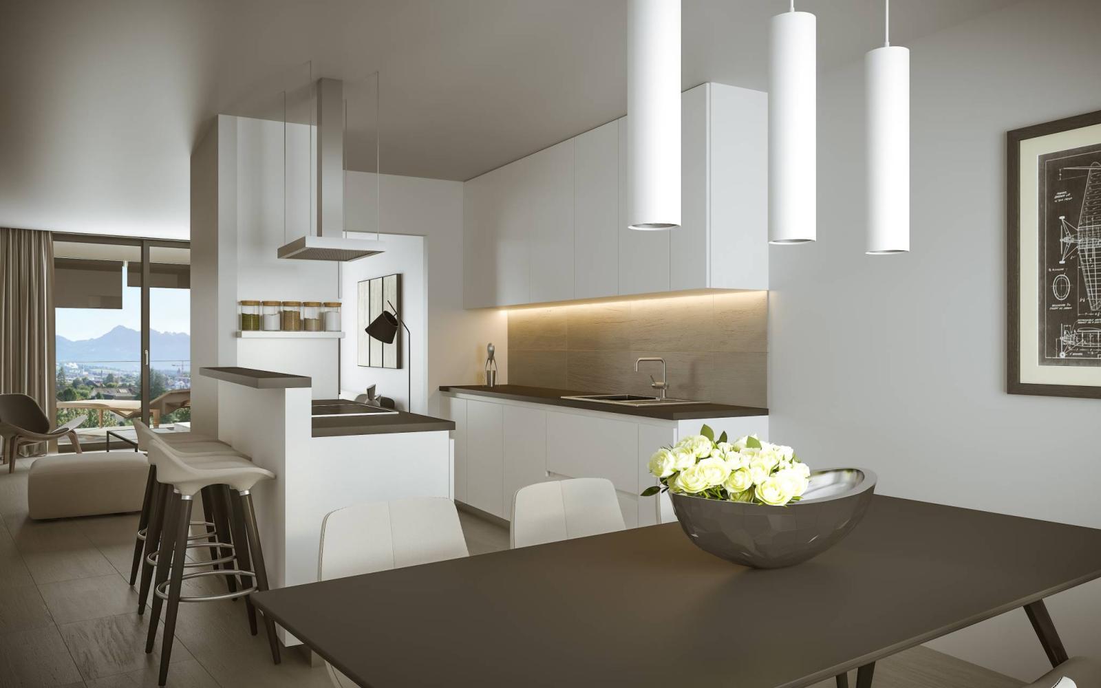 The typologies vary according to your desires and needs, from 2.5 rooms to 5.5 rooms on 5 floors, offering you a superb view of the Gruyère capital.