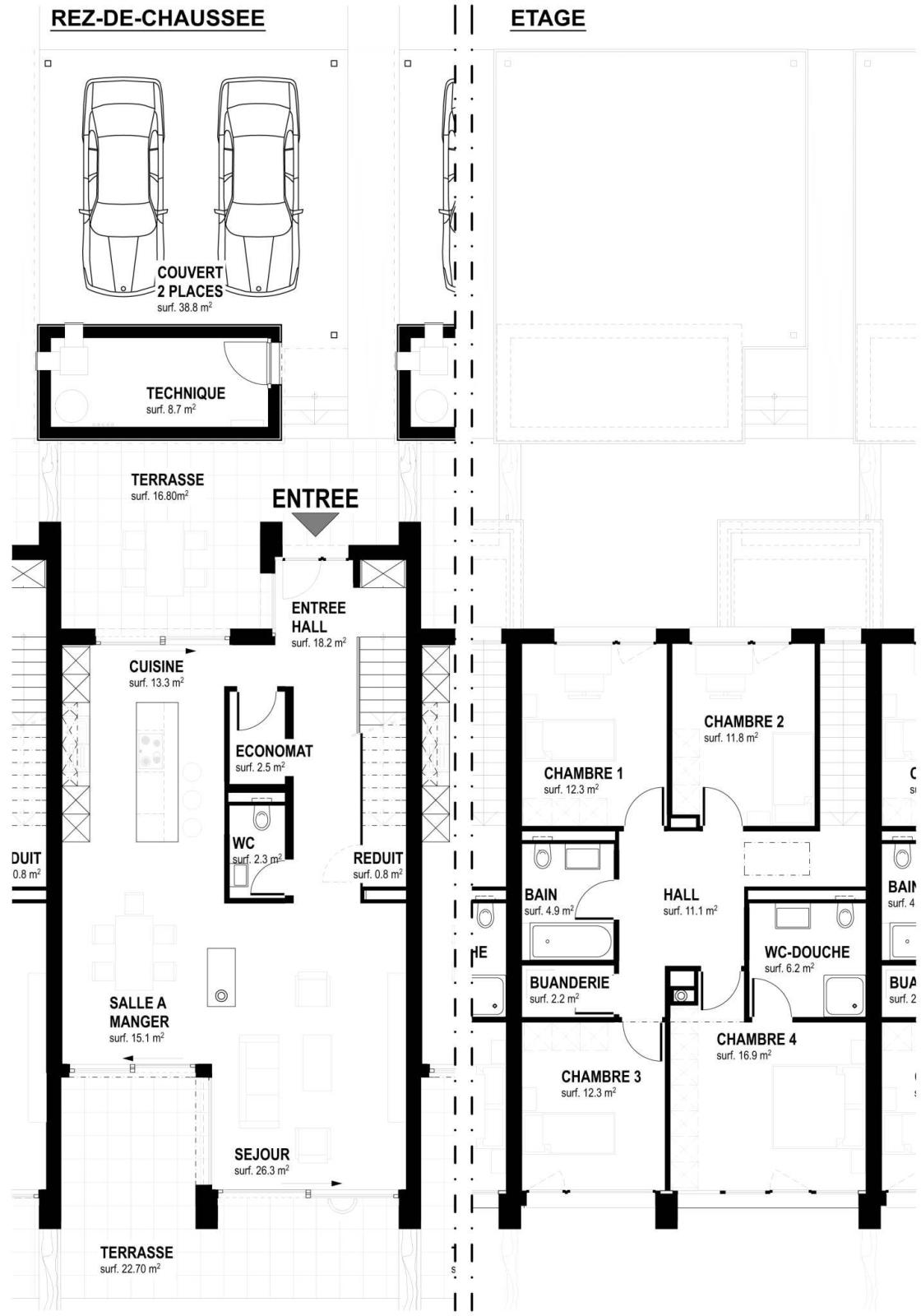 The large and bright rooms will seduce you, the warm and cozy atmosphere of the future villa district will make you feel at home, the two beautiful terraces will allow you to enjoy optimal sunshine according to your desires, and finally, a 2-space carport completes each of the villas.