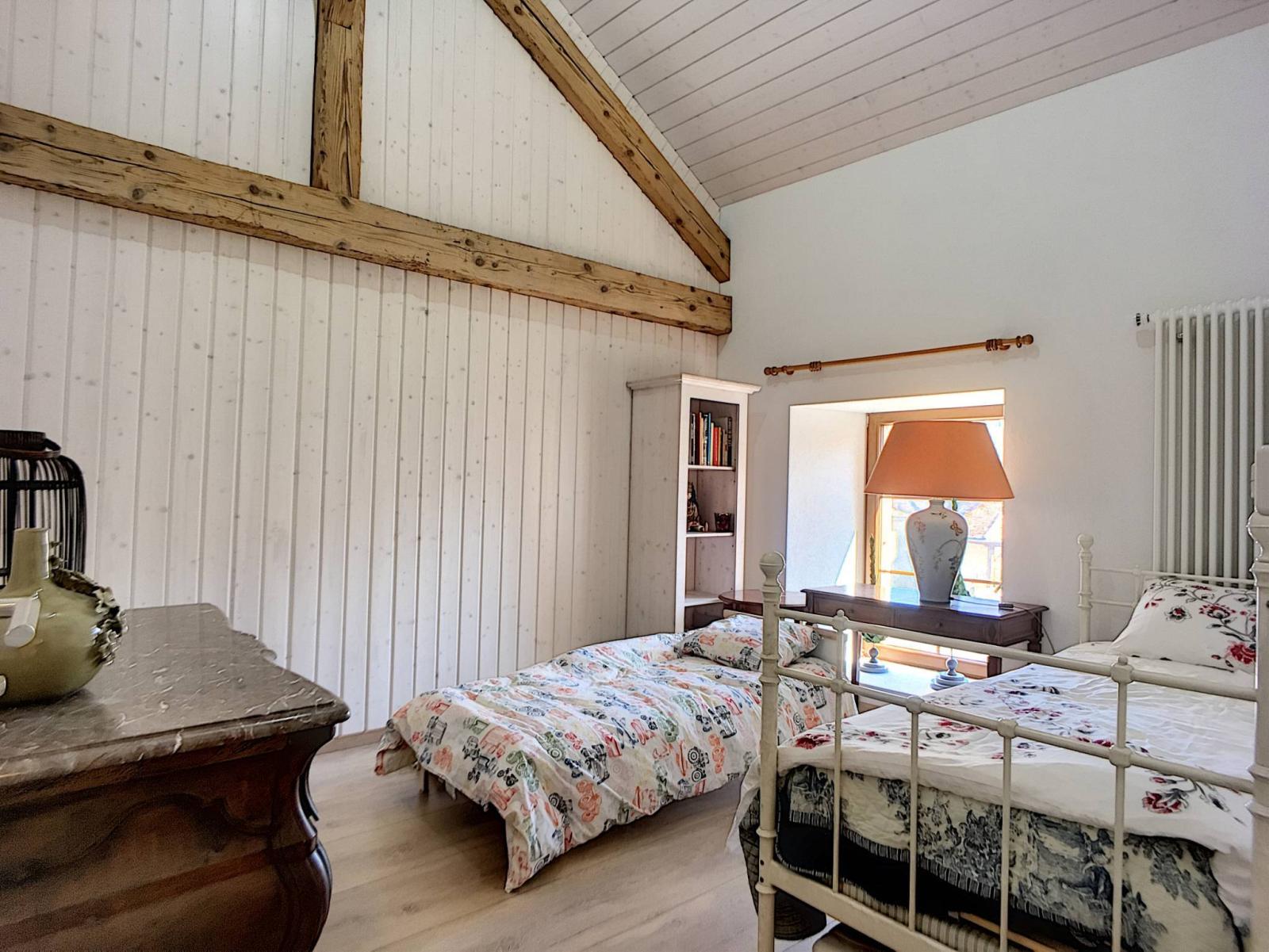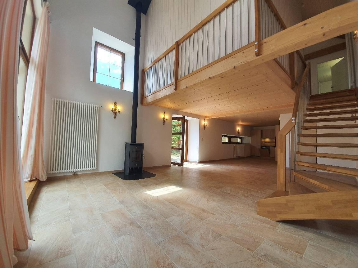 gives it a most welcoming atmosphere. The living area is approximately 100 m2 and the living room benefits from a Swedish stove and a beautiful ceiling height of approximately 4 meters. Beautiful exposed beams for an undeniable character.