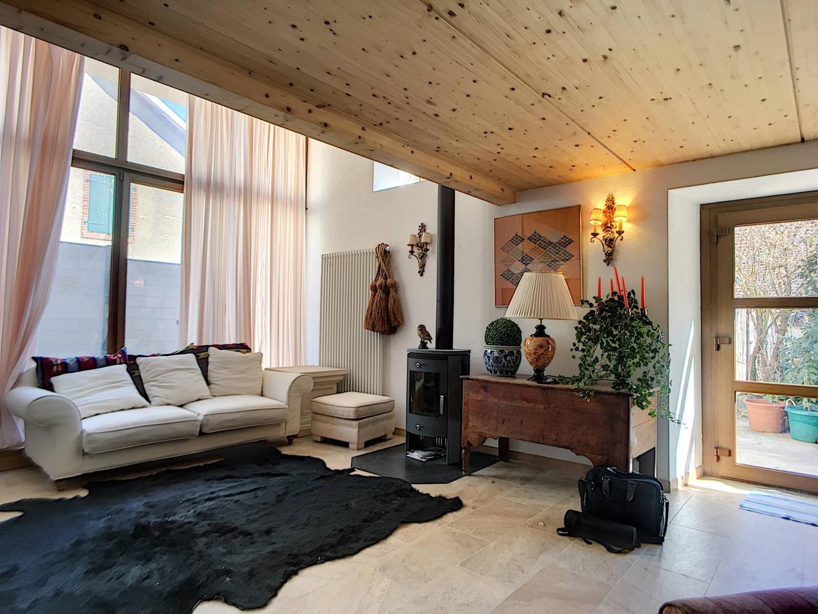 Benefiting from quality materials with stone floors on the ground floor and parquet floors upstairs, its original layout with a void over the living room and a second bedroom,