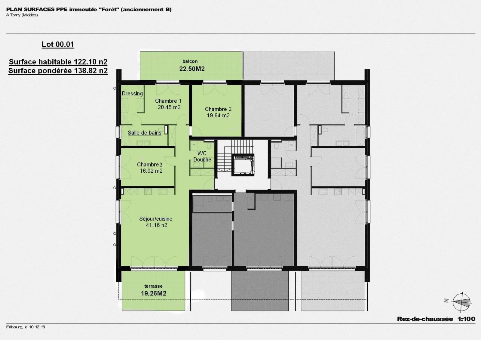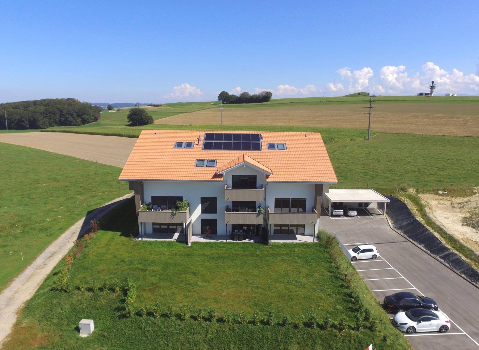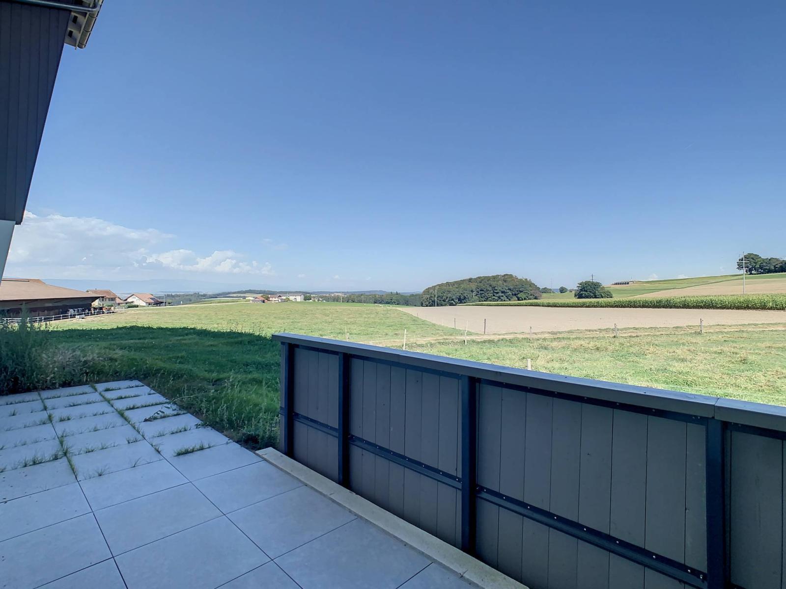 Ideally located between Fribourg and Payerne, this new 4.5 room apartment with private garden has a living area of 122.10 m², a terrace of 19.26 m² and a balcony of 22.50 m², totaling a weighted surface area of approximately 139.87 m². It offers an idyllic living environment combining the proximity of the 2 cities while benefiting from a green environment, on the edge of an agricultural area.