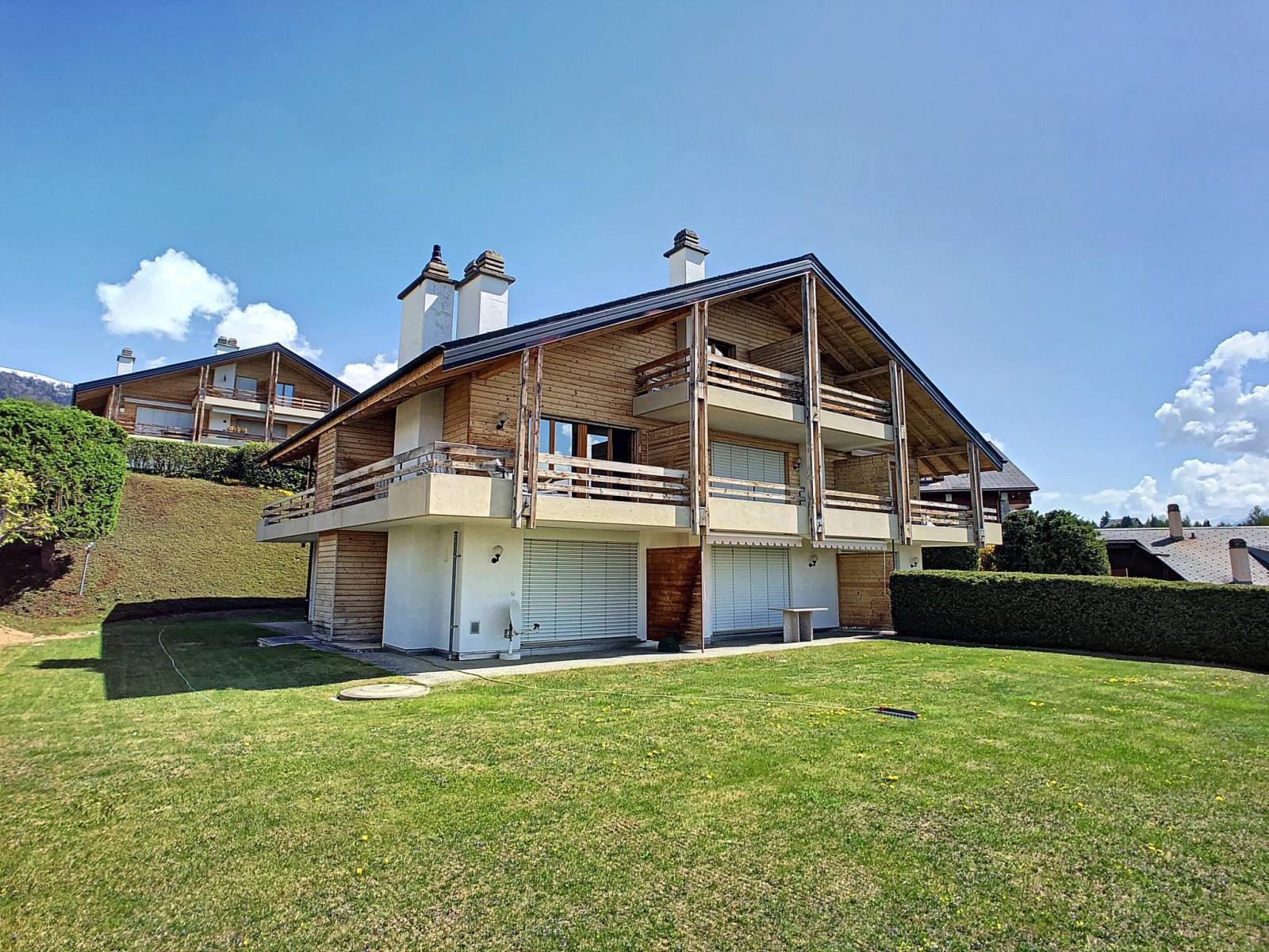 Enjoying a magnificent view of the Rhone plain (as far as Martigny) and the Alps, discover this beautiful apartment located in a quiet residence and a stone's throw from the 18-hole Ballesteros golf course.