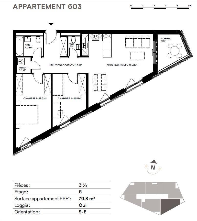 3.5 rooms located on the 6th floor - Lot No. 603