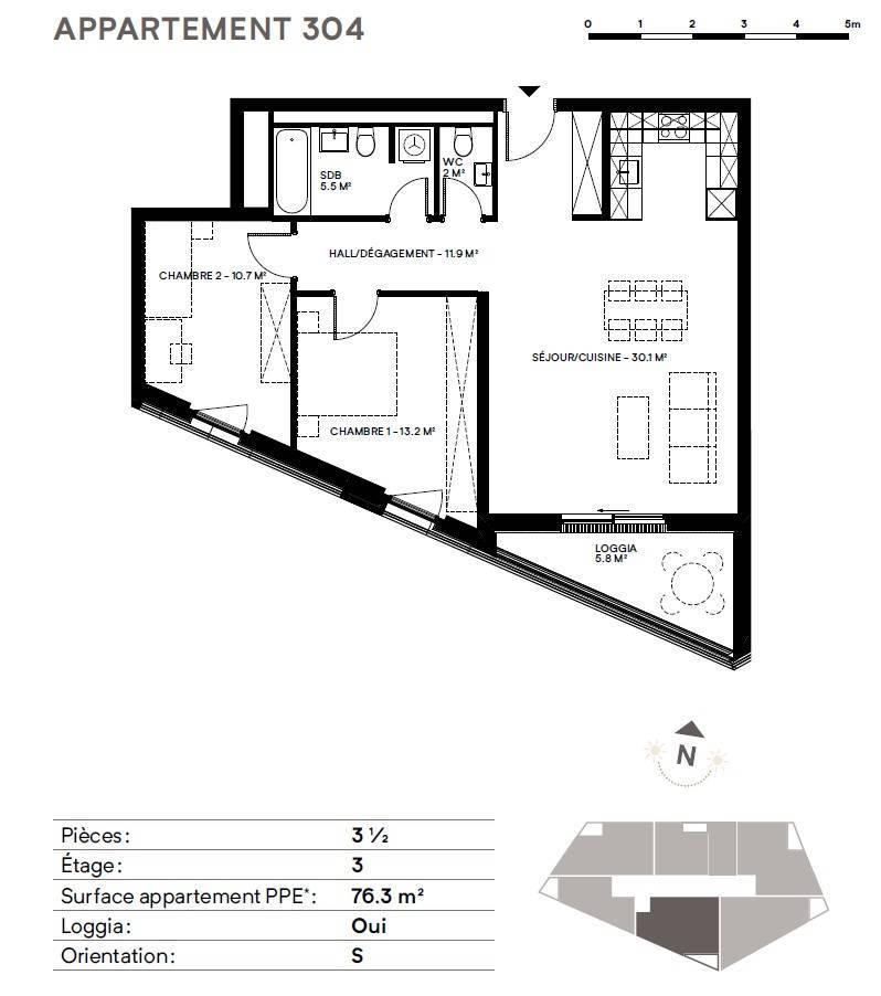 3.5 rooms located on the 3rd floor - Lot No. 304