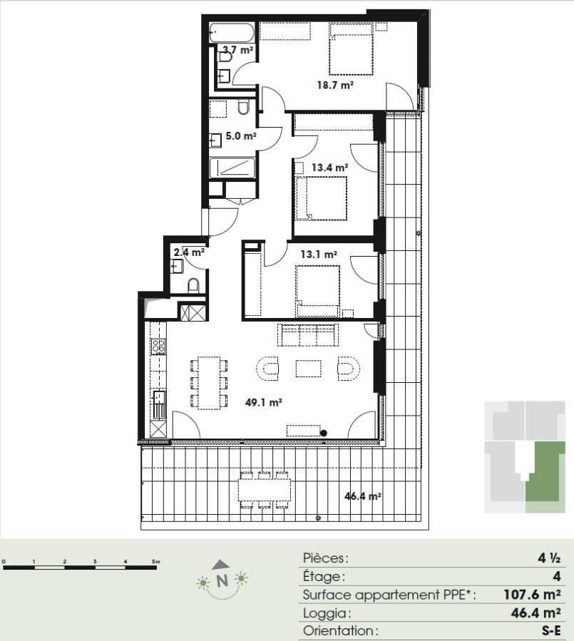 4.5 rooms located on the 4th floor - Lot no. F4.3