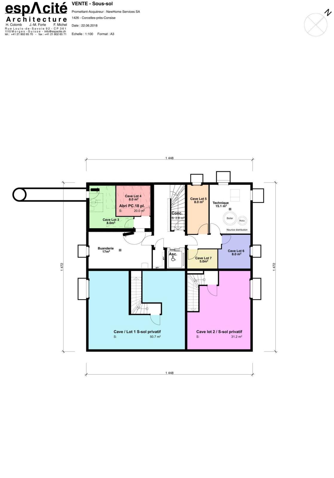 The advantages of this project: - Direct access to the private basement offering spacious cellars-workshop rooms for the apartments located on the ground floor, lots n°1 and n°2
