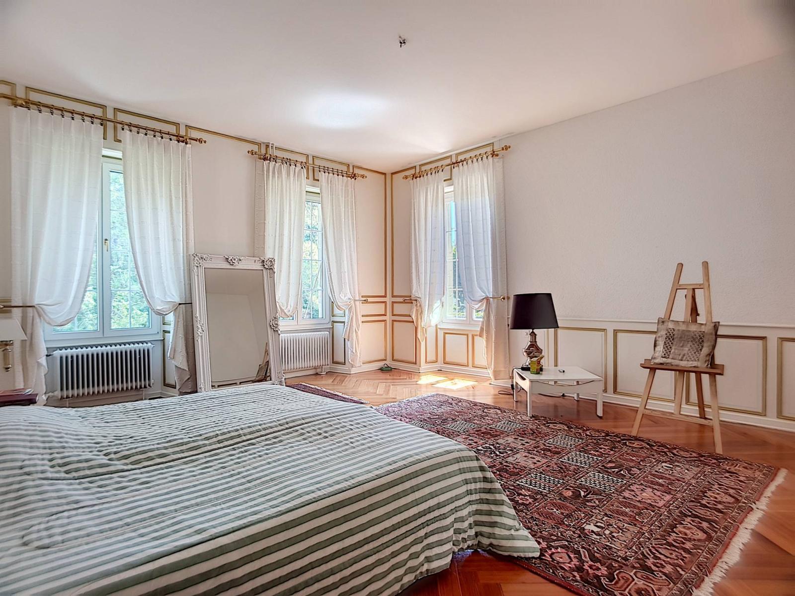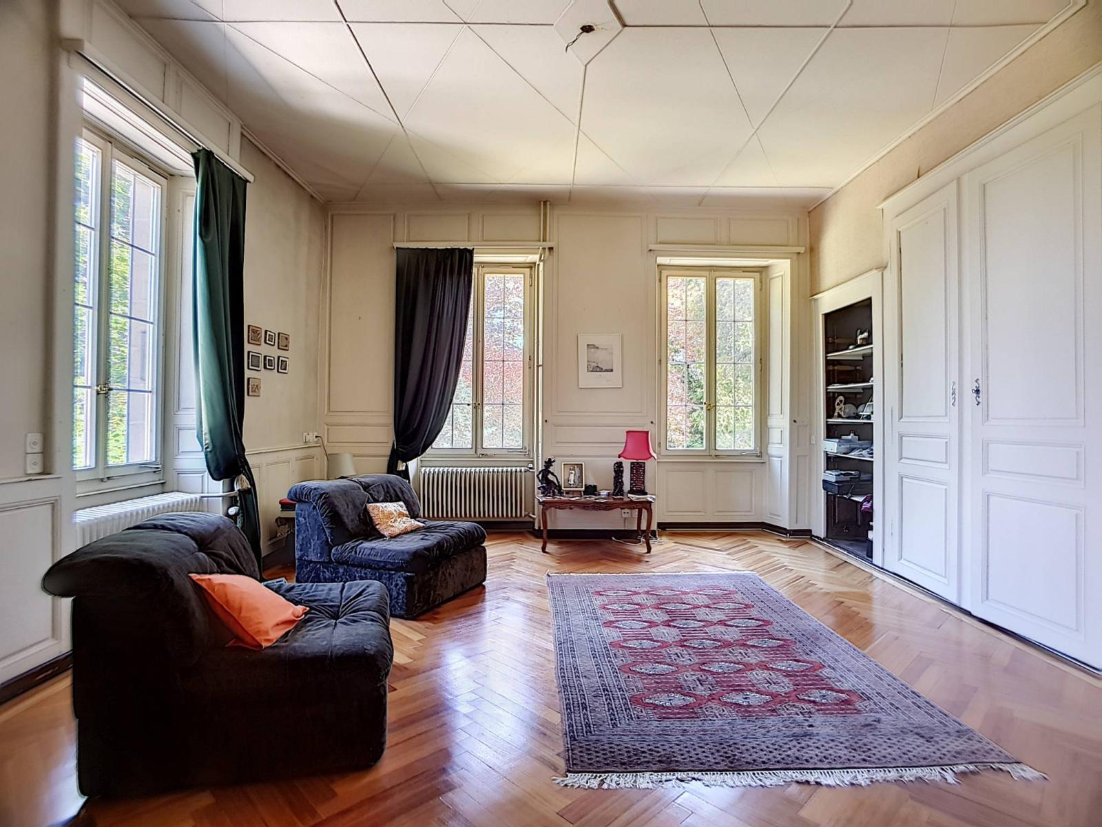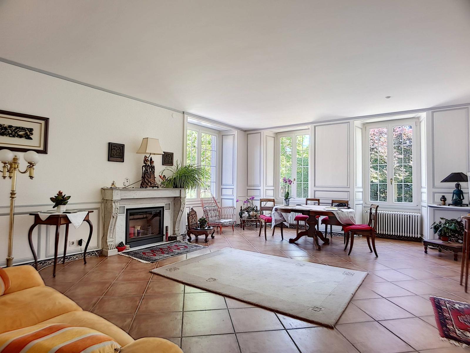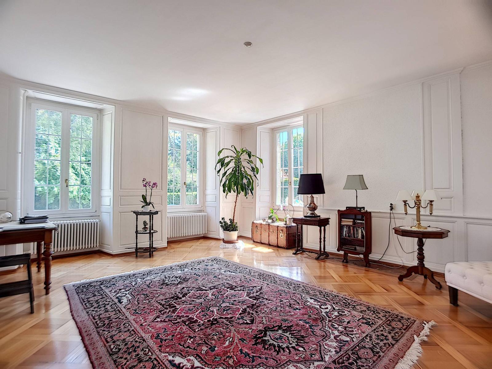 Built on a pleasant plot of approximately 2,238 m², this house is distributed over 3 levels + attic space totaling a living area of over 400 m². Each of its 12 rooms benefits from generous volumes, whether it is the living rooms, bathrooms or bedrooms, all decorated with ceiling moldings, beautiful fireplaces and old parquet floors.