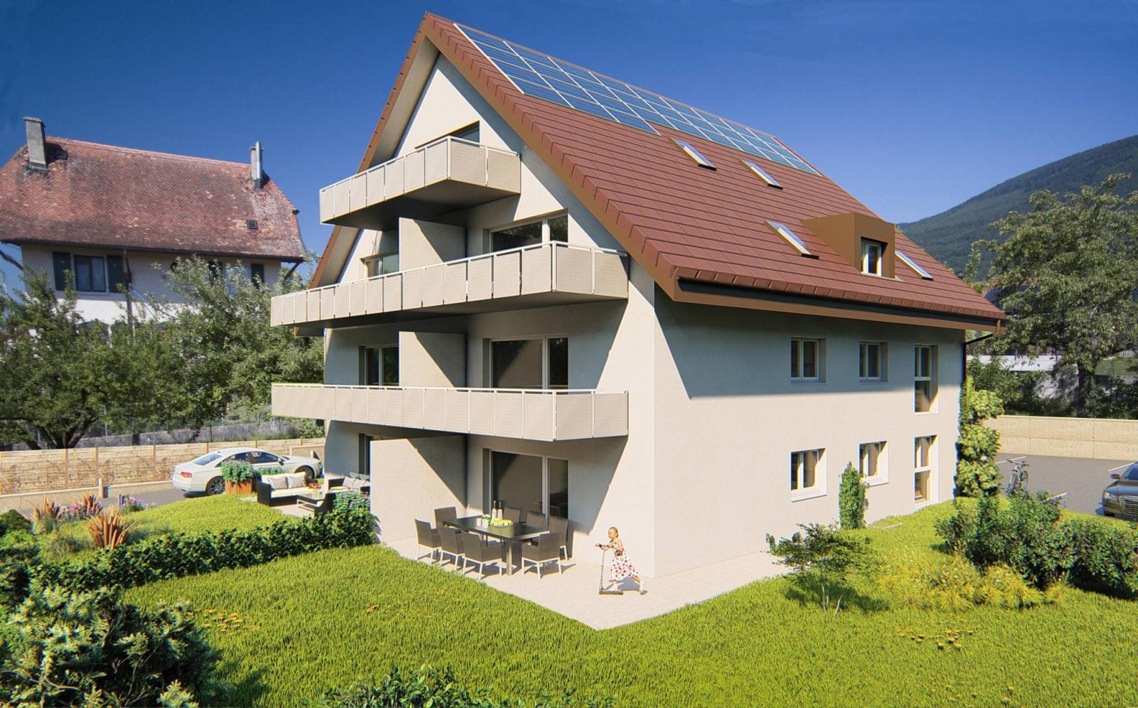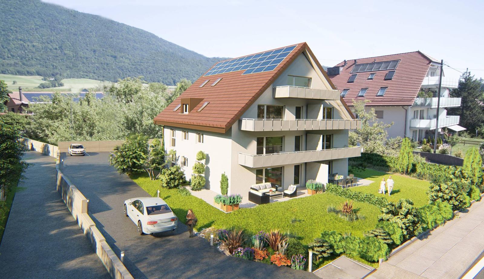 In Corcelles-près-Concise, 15 minutes from Yverdon-les-Bains, the new "Champs-Soleil" project, spread over 4 floors, is made up of 7 apartments of 3.5 rooms and 4.5 rooms, with surface areas ranging from 79 to 130 m².