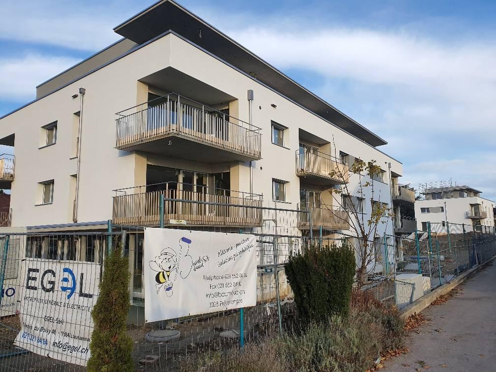 The project takes into account the orientations, visual clearances and constraints of the place to define the different typologies, which range from 2.5.5 rooms. All the apartments have balconies facing mainly to the South. Attics with large terraces crown each of the two buildings.