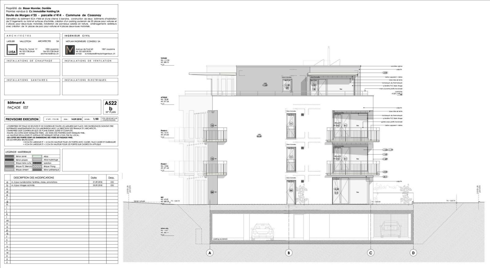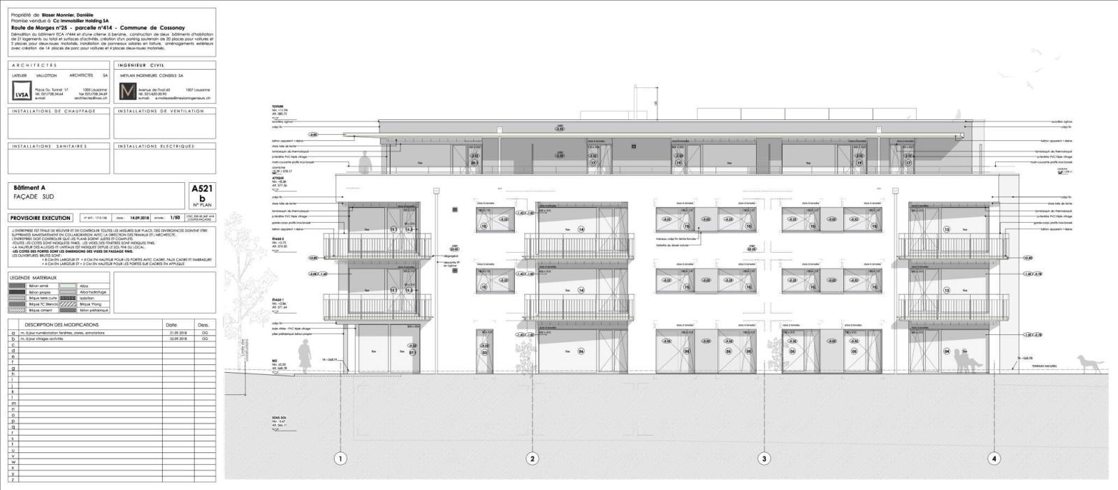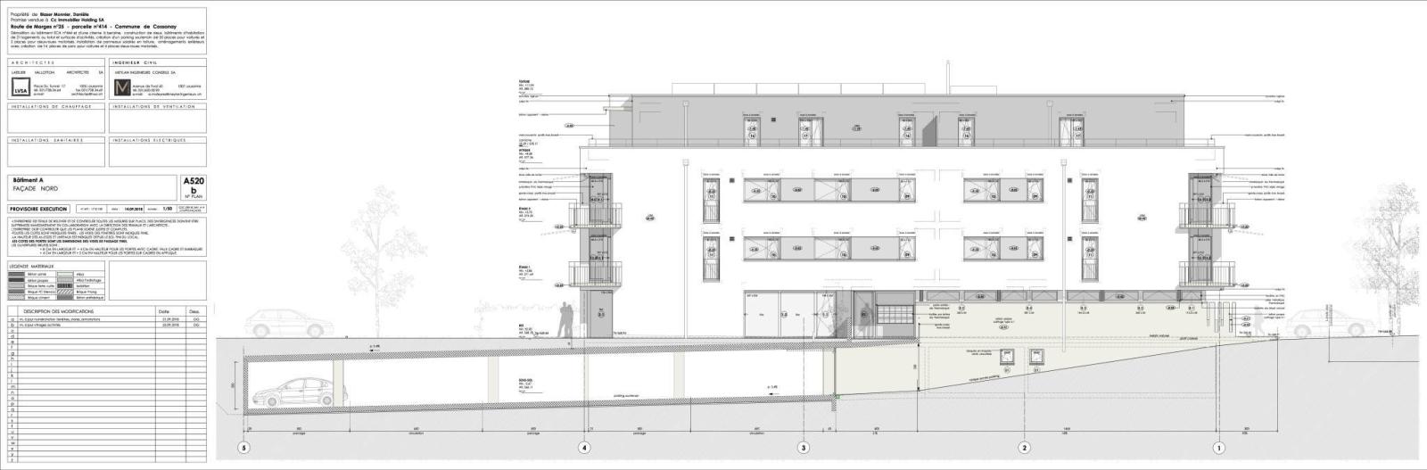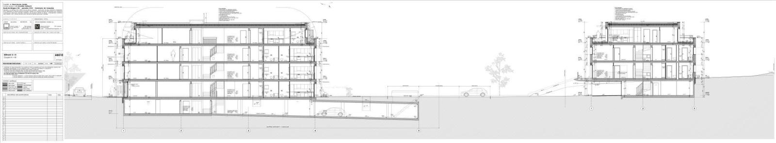 - The project takes into account the orientations, visual clearances and constraints of the place to define the different typologies, which range from 2.5 to 4.5 rooms. All the apartments have balconies facing mainly to the South. Attics with large terraces crown each of the two buildings.