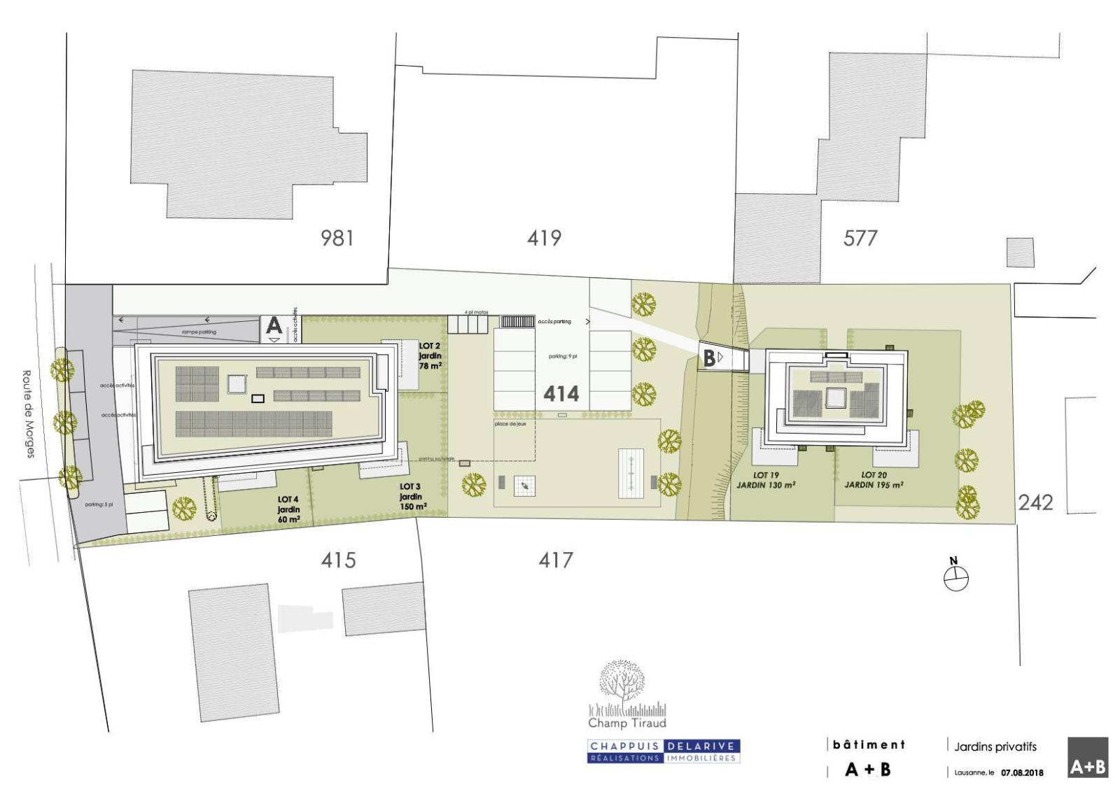 The project takes into account the orientations, visual clearances and constraints of the place to define the different typologies, which range from 2.5 to 4.5 rooms. All the apartments have balconies facing mainly to the South. Attics with large terraces crown each of the two buildings.