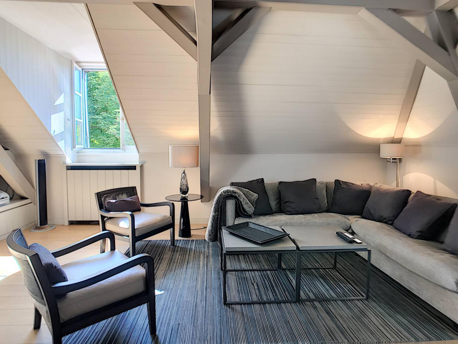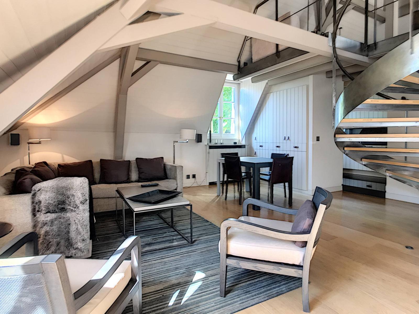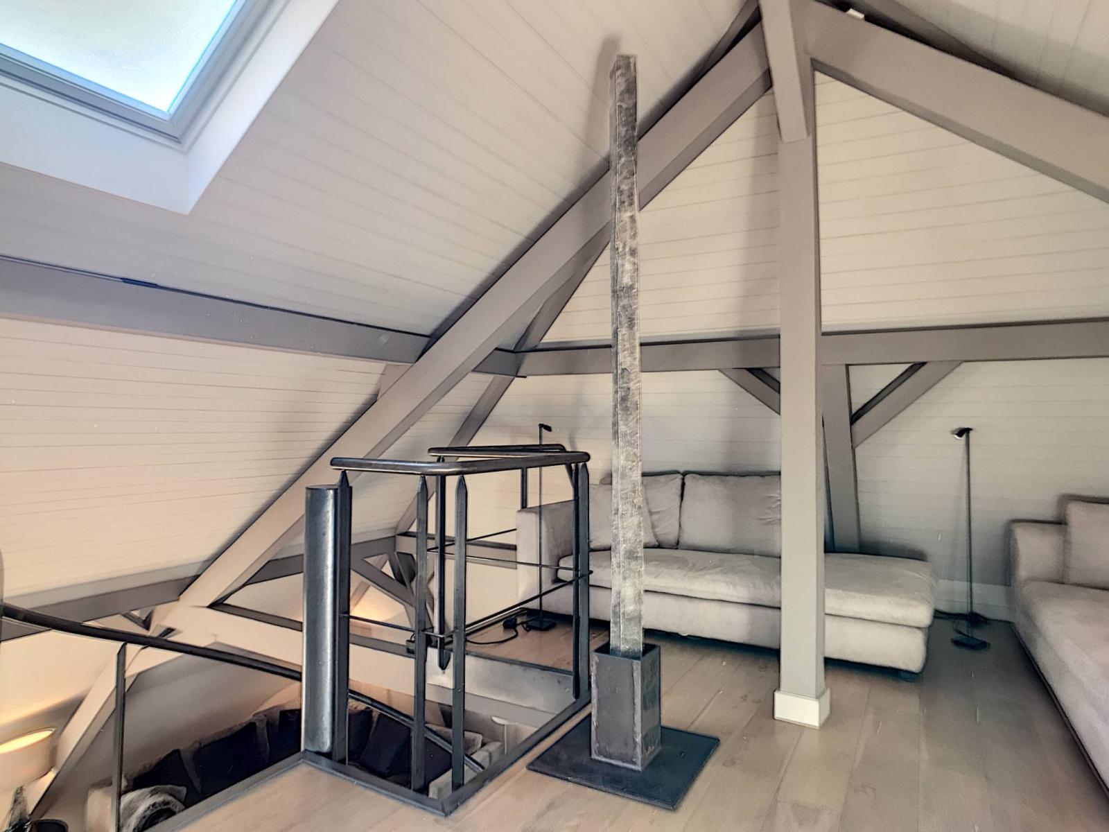 Beautiful duplex apartment of 151 m² located on the top 2 floors of a 1769 castle, completely renovated and divided into 6 luxury apartments. Its beautiful volumes and exposed beams will seduce you.