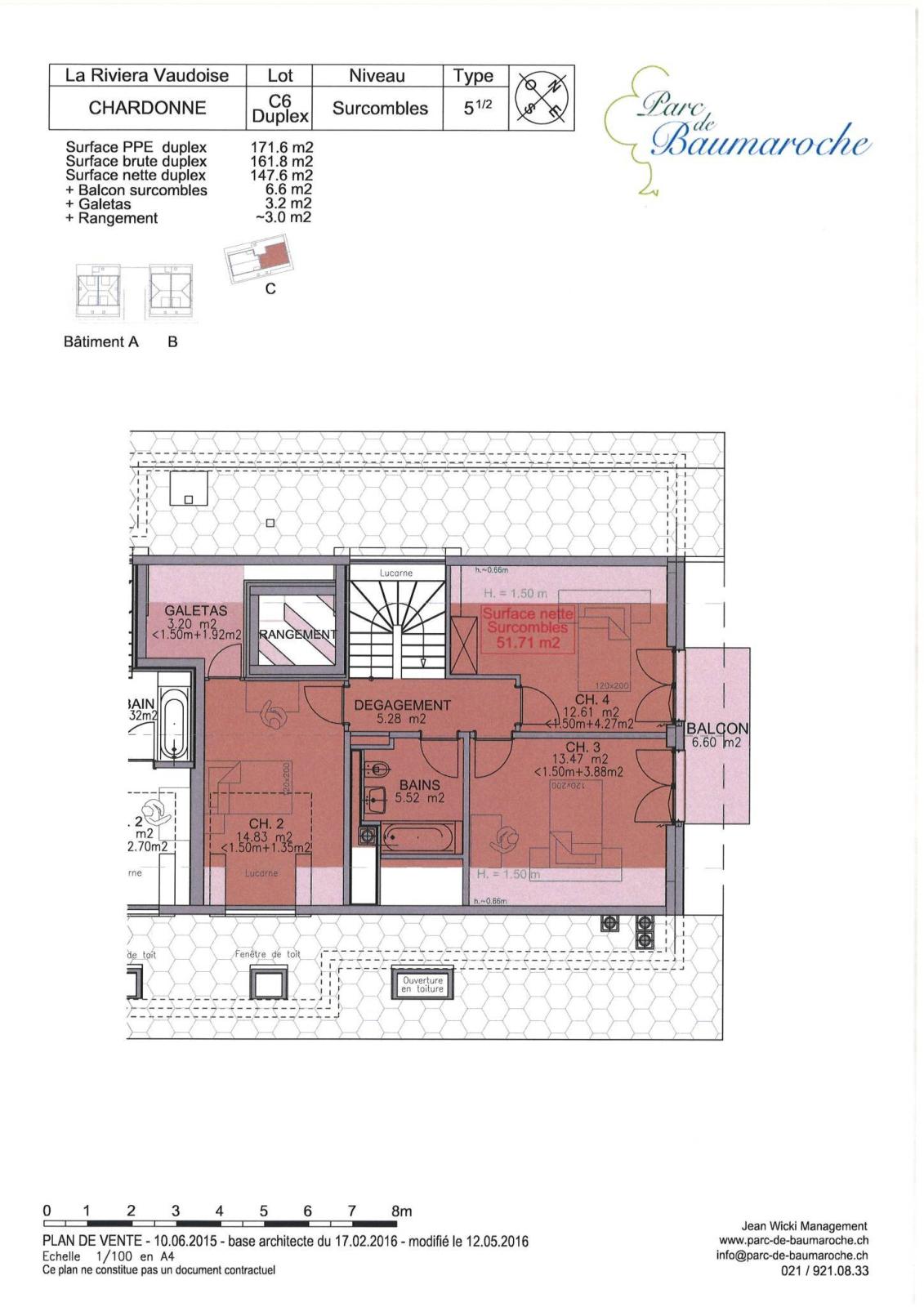 5.5 room duplex, lot C6, on the top floor