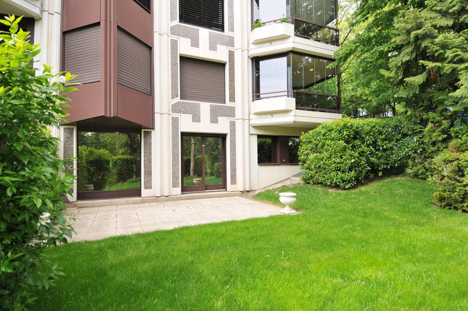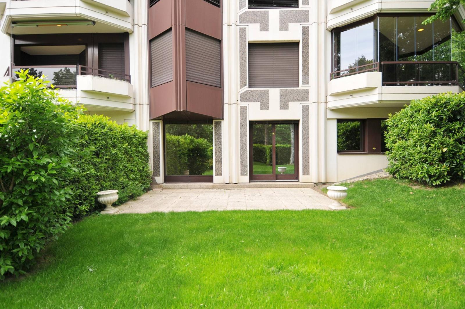 The apartment benefits from a lovely view of the condominium park and a private garden.
