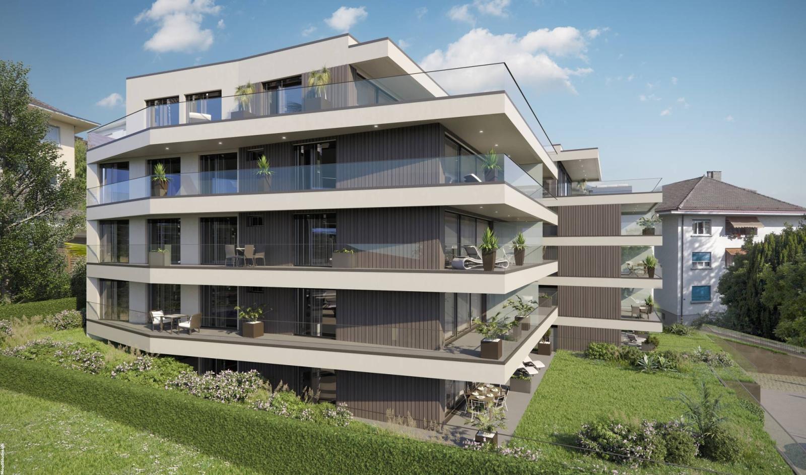C'15 offers 8 apartments of 3.5 to 5.5 rooms with terrace and garden for the ground floor apartment, large balconies for the upper floor apartments and semi-covered terrace for the attic apartment.