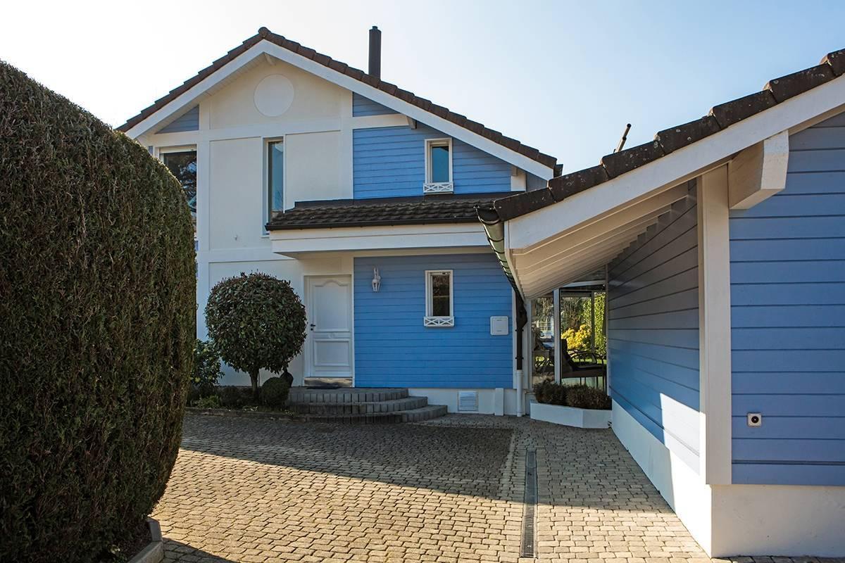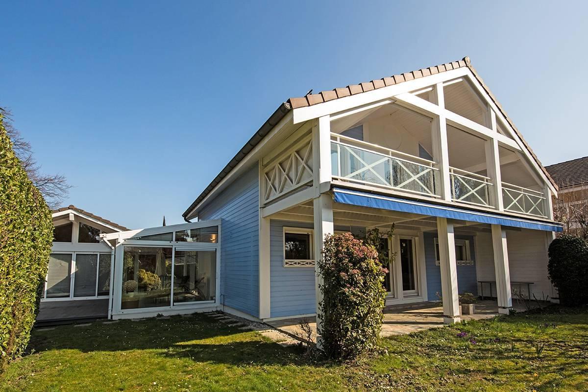 Located a few steps from the lake, on a beautiful landscaped plot facing South-West of approximately 1,200 m², it offers a living area of approximately 180 m² and 230 m² useful, distributed as follows: