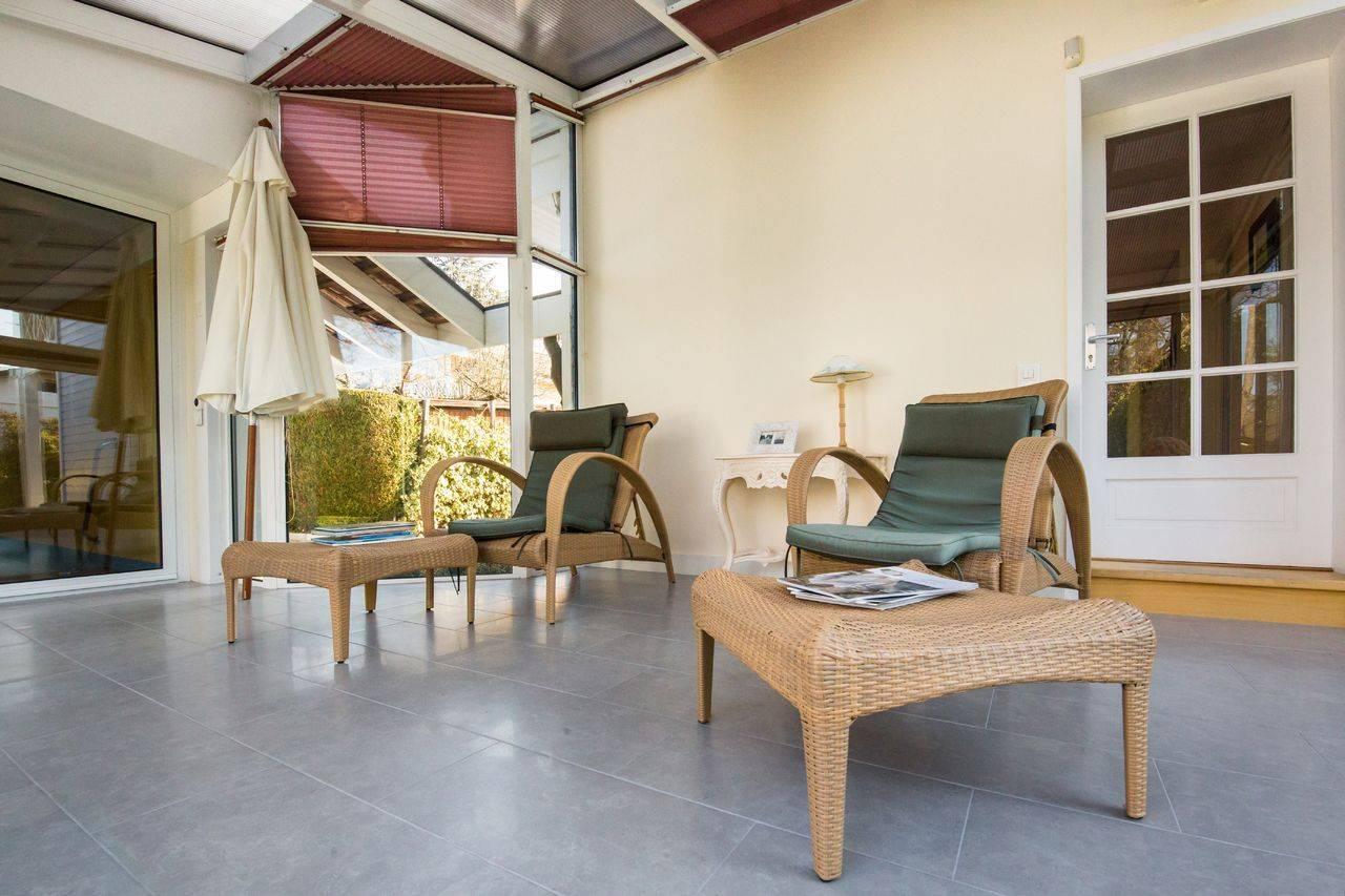 The ground floor consists of an entrance hall, a guest toilet with a laundry area, a beautiful fully equipped kitchen and a large living room - dining room with access to a lovely covered terrace and the garden. A pleasant heated veranda of 17 m² opening onto a second terrace of 24 m² completes this level.