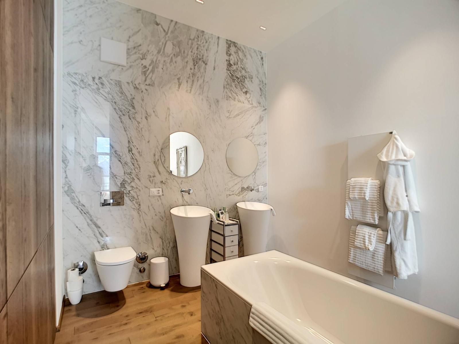 This 3.5 room apartment with a weighted surface area of approximately 211.27 m², has a spacious living room, an open-plan fitted kitchen, a 36 m² balcony-terrace and two bedrooms, each with their own adjoining shower room.