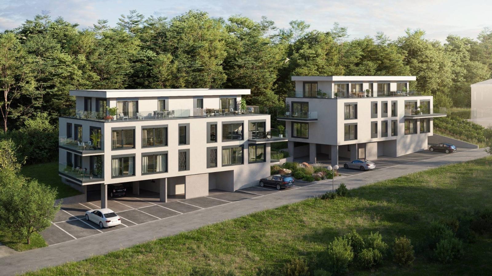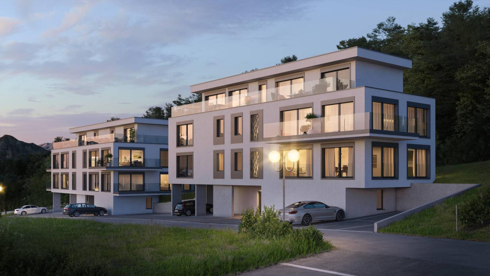 The project consists of 12 apartments, from studios to 5.5 rooms, spread across two buildings with modern and elegant architectural lines: