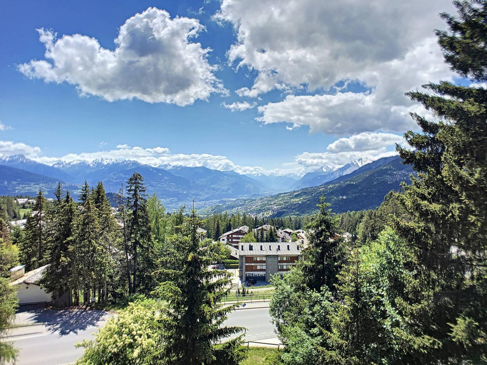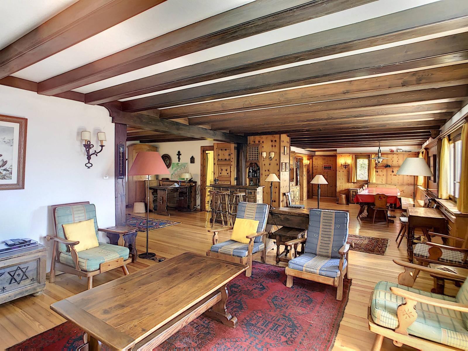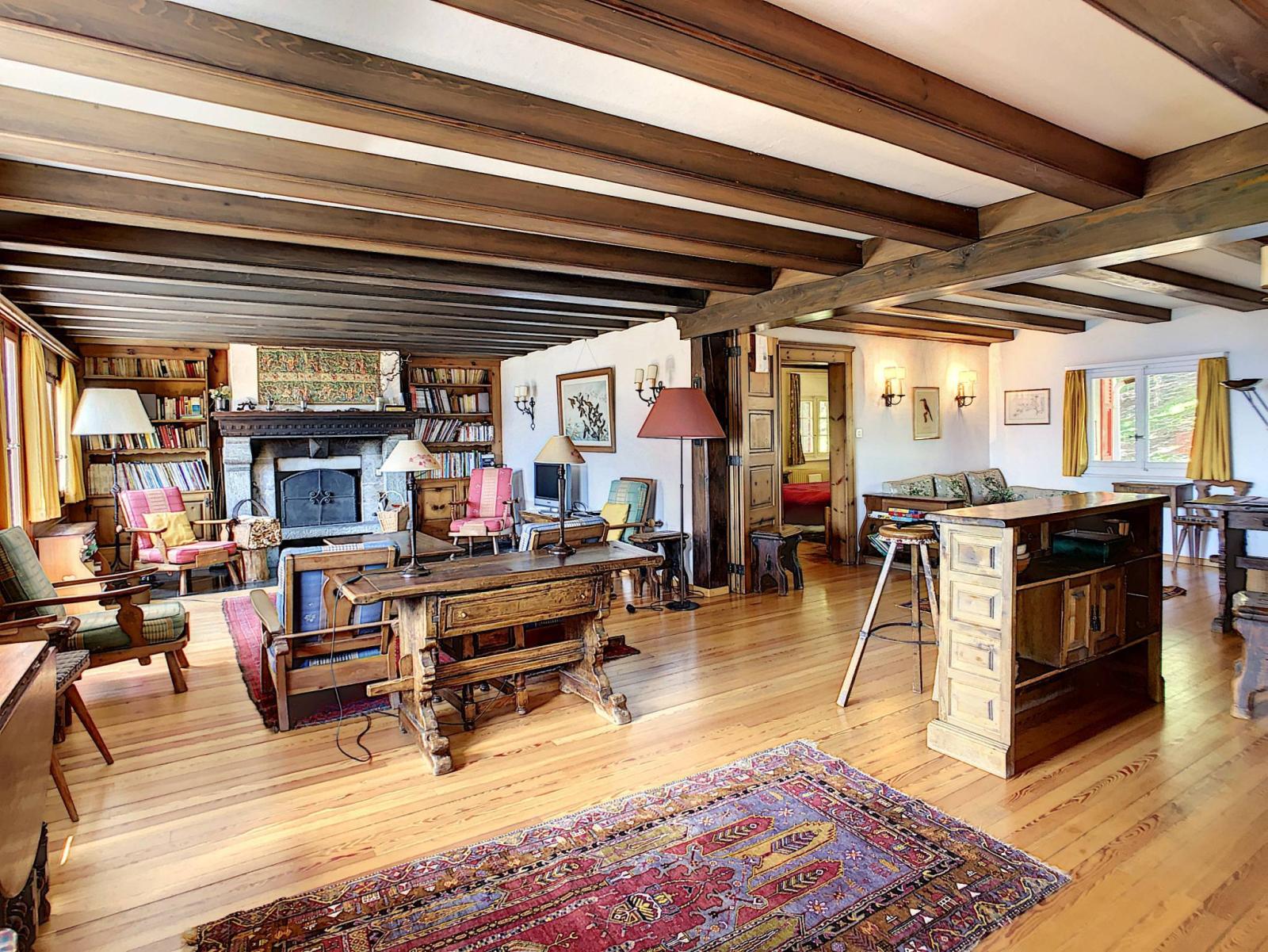 Close to the resort centre, this chalet, in good general condition, enjoys a magnificent view of the Rhone Valley and the Alps. Situated in an idyllic setting, the property benefits from a very beautiful plot of 3,000 m2.