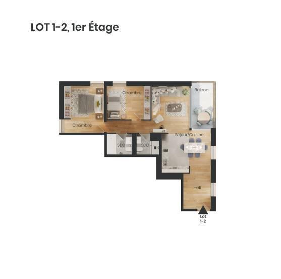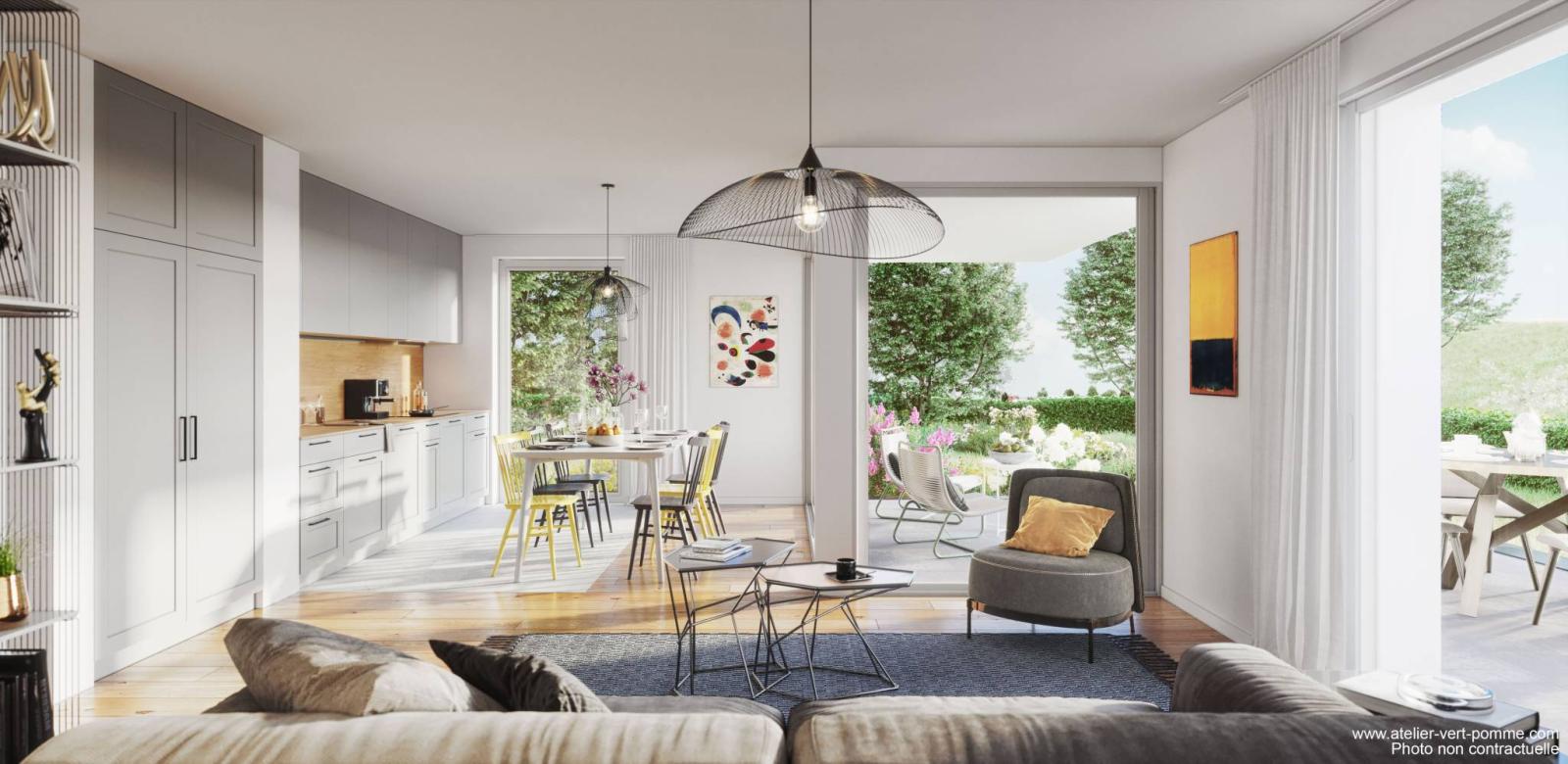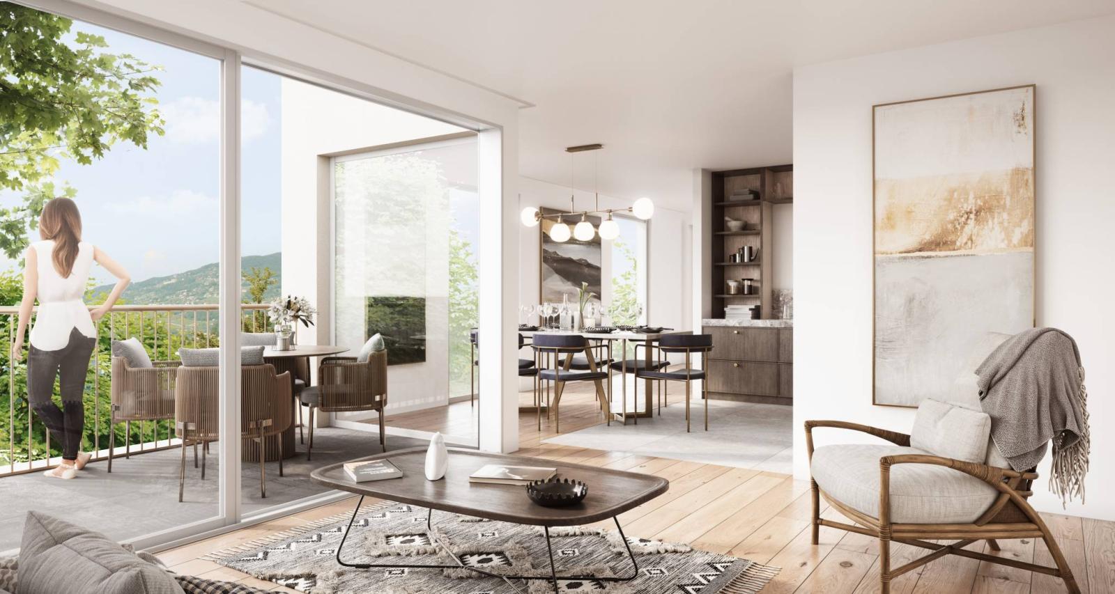 The types offered range from studios to 3-room apartments. Each lot has generous living space and a balcony or terrace.
