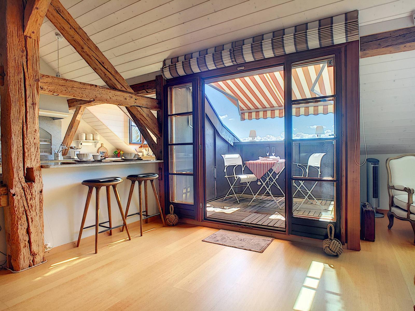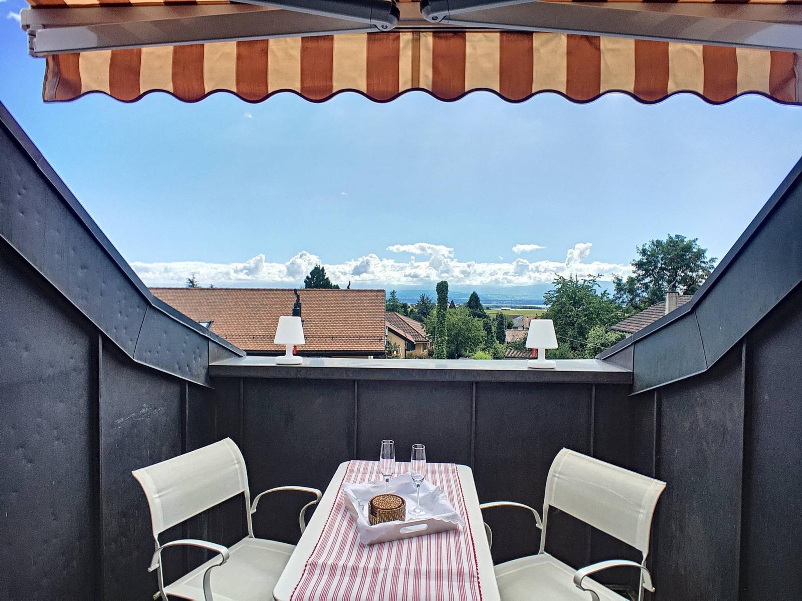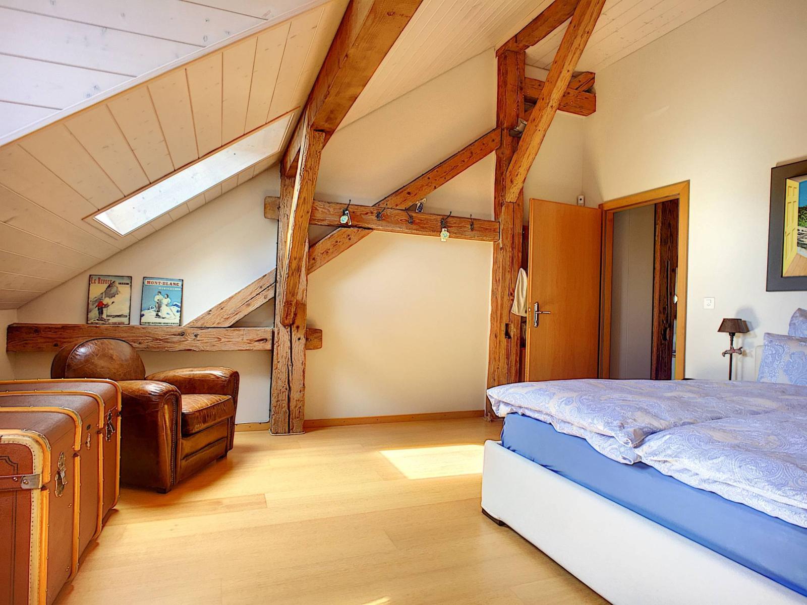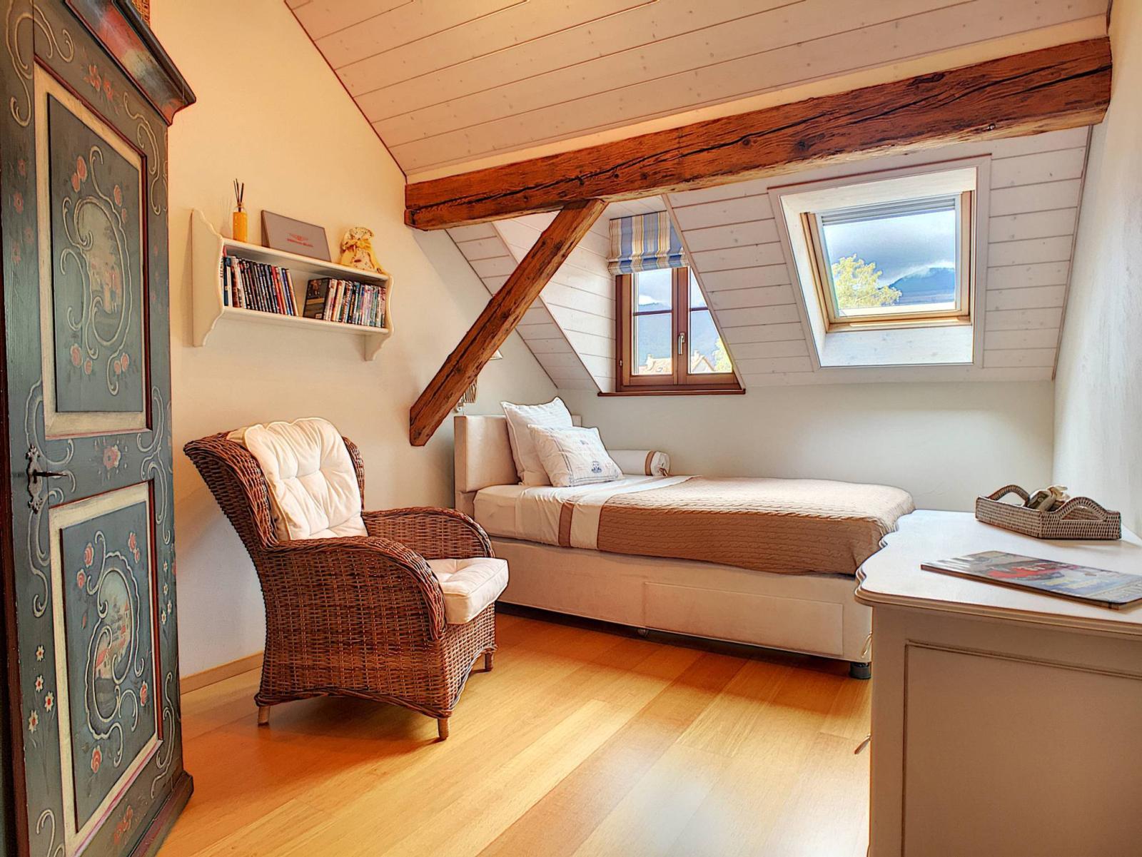 In an old farmhouse renovated in 2002, with only two apartments per entrance, BARNES La Côte presents this peaceful setting combining old-world charm and modernity. On the first and last floor, this 4.5-room apartment located under the roof offers a useful surface area of approximately 145 m² with a terrace overlooking the lake and Mont Blanc.
