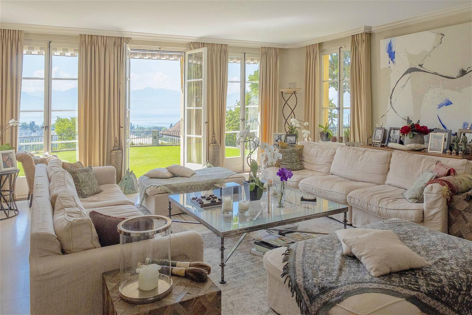 - A very charming and prestigious Maison de Maître of approx. 600 m² of living space, plus 200m2 of basement, modern and in perfect condition, with spacious rooms with high ceilings and great brightness, linked in a row and offering breathtaking views. A family paradise of as much prestige as rare beauty, enjoying from everywhere this splendid view of Lake Geneva and Mont-Blanc.