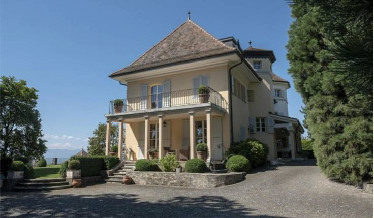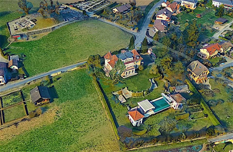 - Built in 1951 for a banker-painter from Vaud, "Le Crêt Noé" was enlarged twice by Nicolas Büchler, architect, the current owner, who added in 1994 the entrance pergola to the North, the large living room to the South, the hexagonal tower to the West as well as the swimming pool esplanade with its summer pavilions, the service apartment and the two fountains in the greenhouse, and then in 2006 essentially the 2nd floor with its large roof today delimited by two mansard roof points to the East and West.