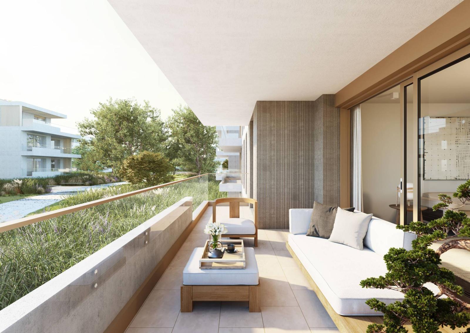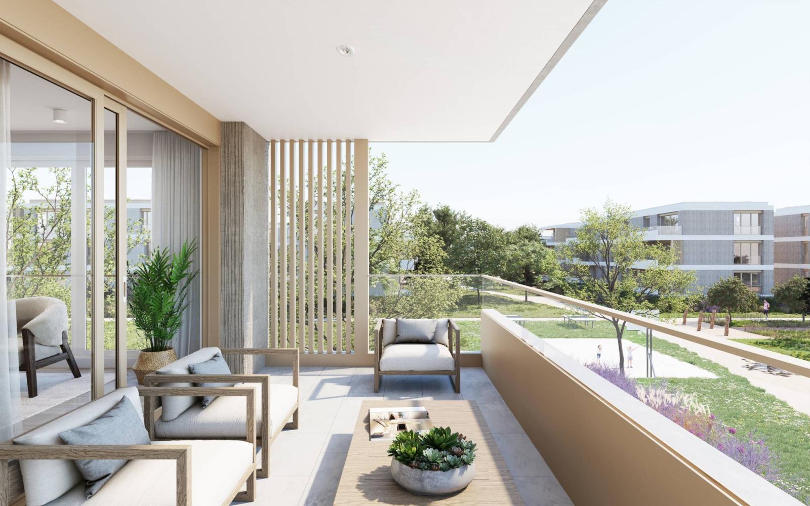 The 4 rooms offer generous PPE surfaces ranging from 114.4 m2 to 123.9 m2 with balconies from 18.6 m2 to 21.6 m2.