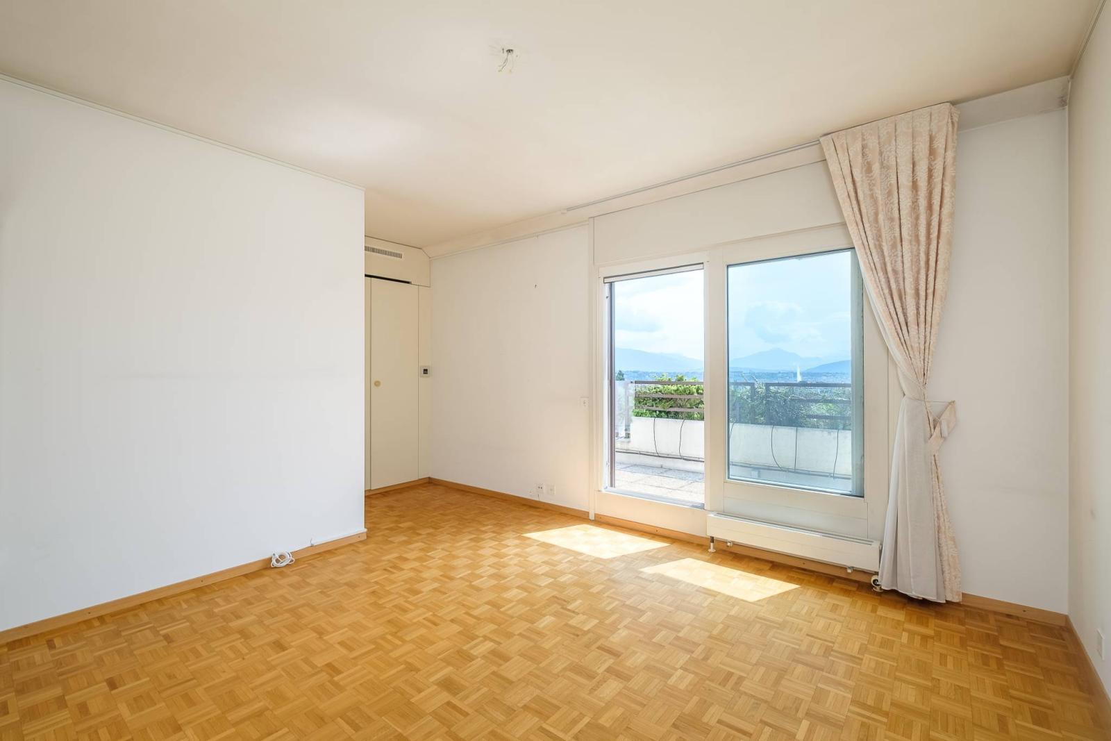 Bright and gabled, the apartment benefits from a panoramic and breathtaking view of the city, the Alps and the Jet d'eau.