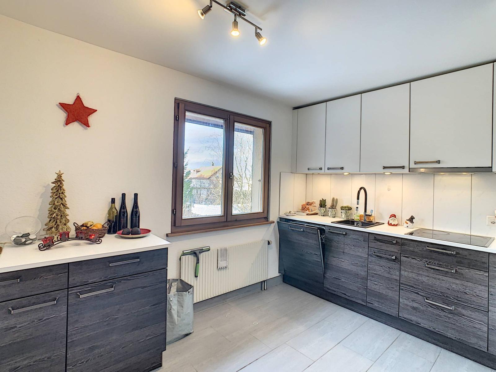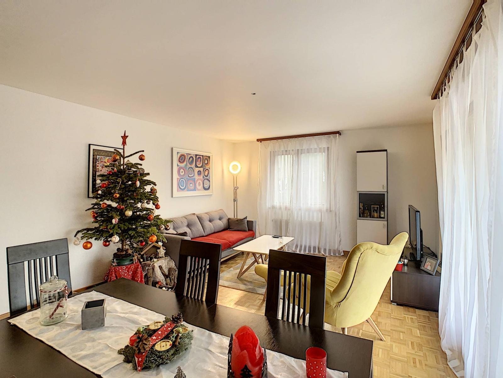 Built in 1989 and renovated in 2018 with quality materials, this spacious 3.5 room apartment has a total living area of 81.1 m² completed by an 8 m² balcony, bringing the weighted area to 86.1 m². It is located on the 1st floor of a PPE building with 6 apartments.