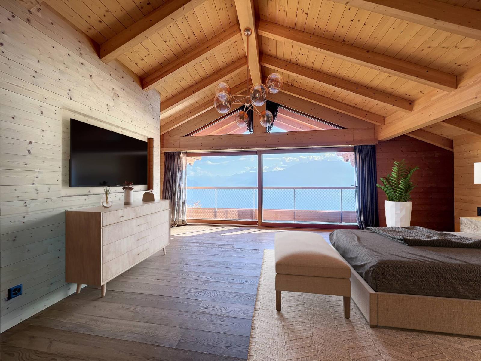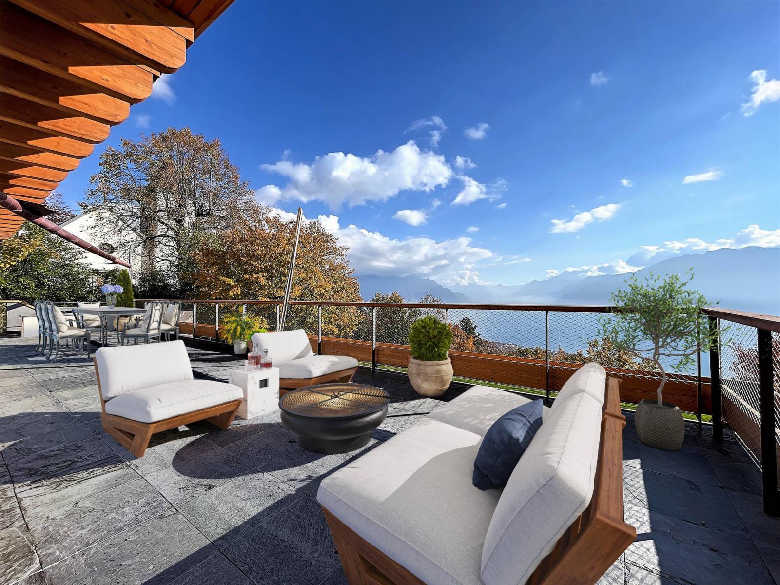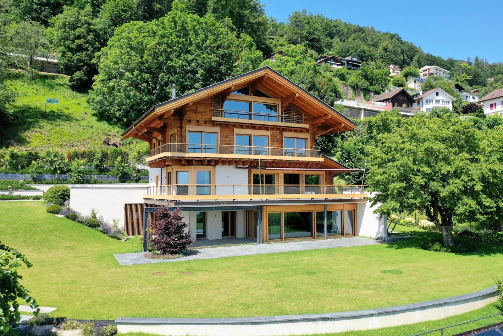 Sumptuous 10-room chalet of approximately 405 m² of living space benefiting from an exceptional, unique and private location, with a spectacular view over Lake Geneva and the mountains.