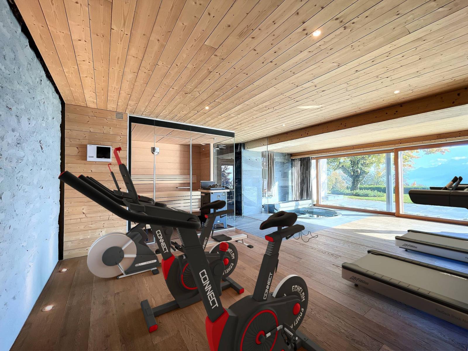 A relaxation room with sauna/jacuzzi, a cellar, outdoor parking spaces and a garage for at least 3 vehicles complete the comfort of this rare property.