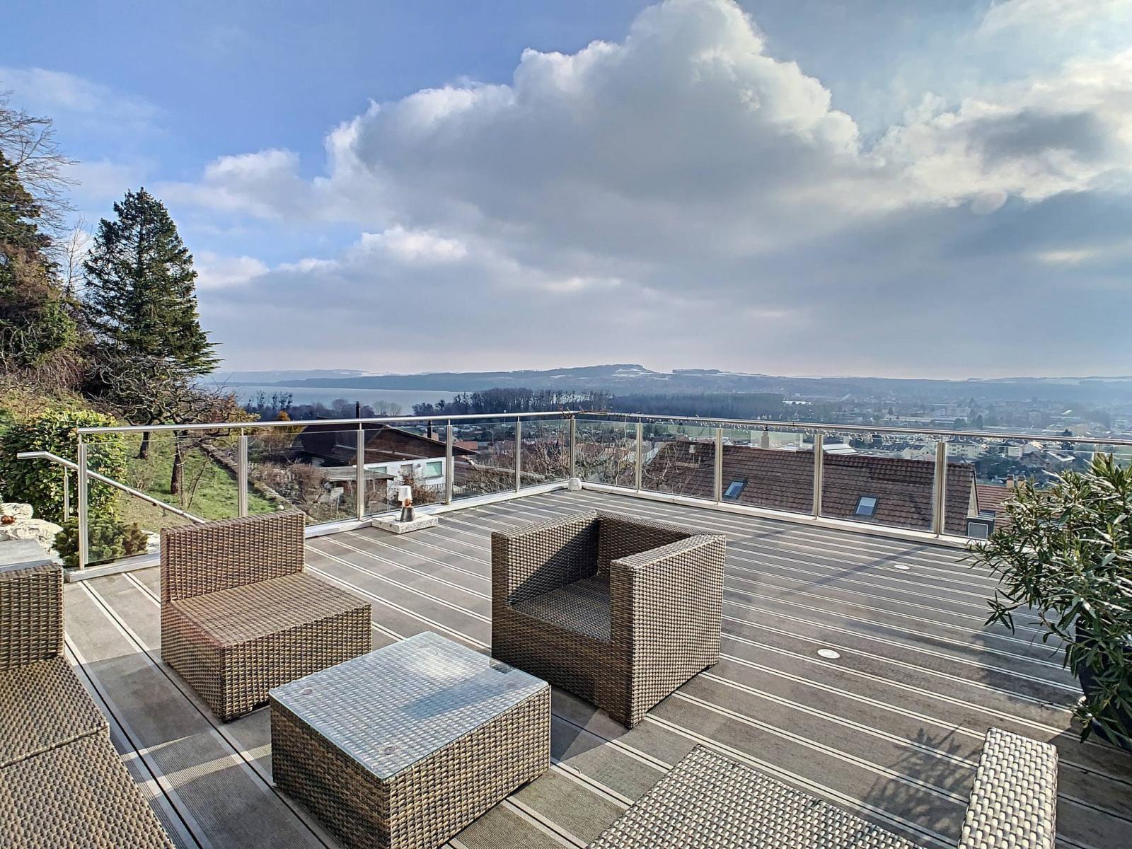This superb semi-detached villa is located in the heights of the "Tuileries-de-Grandson", in a residential area close to all amenities and motorways. It benefits from a clear view thanks to its dominant position.