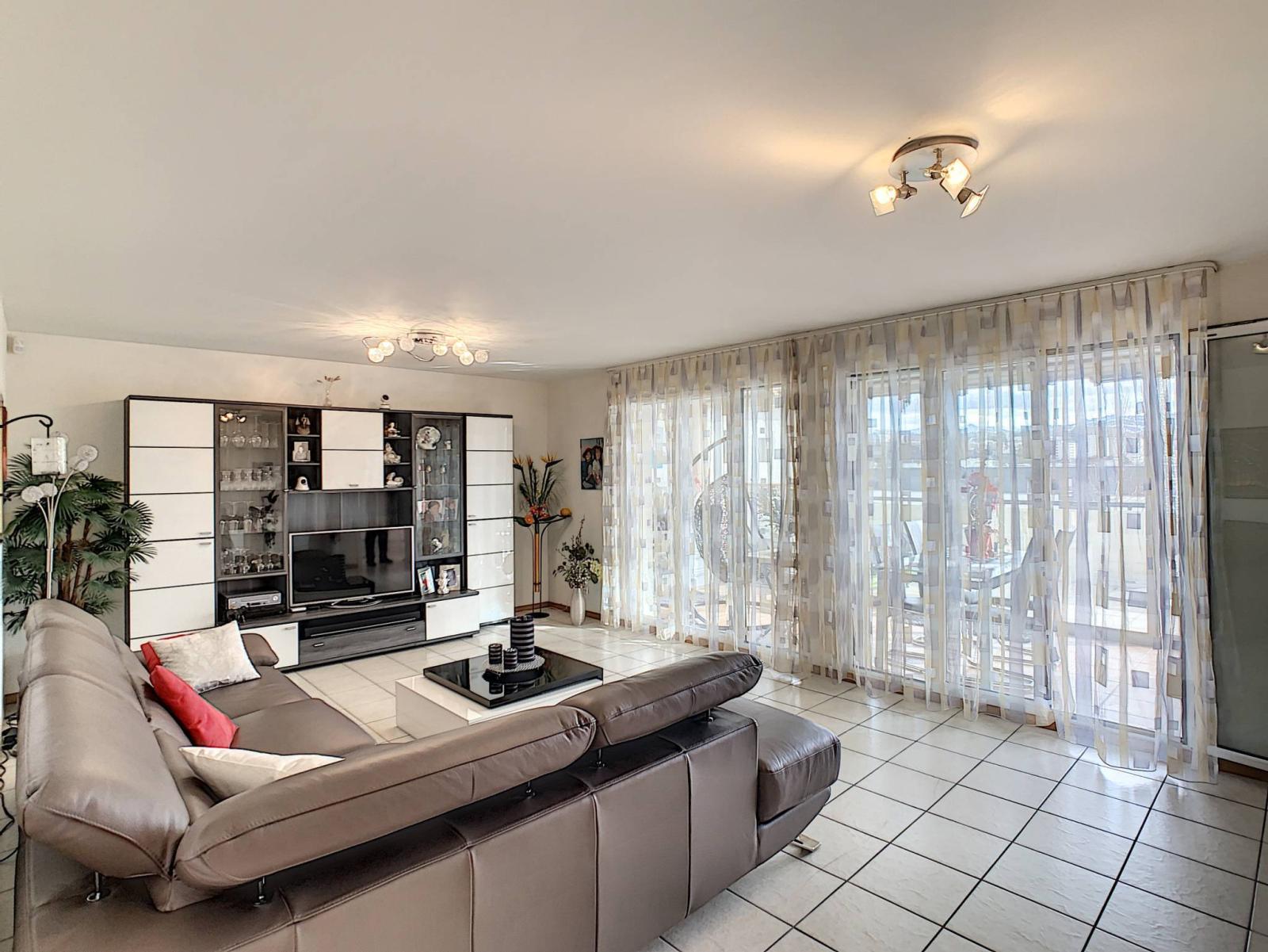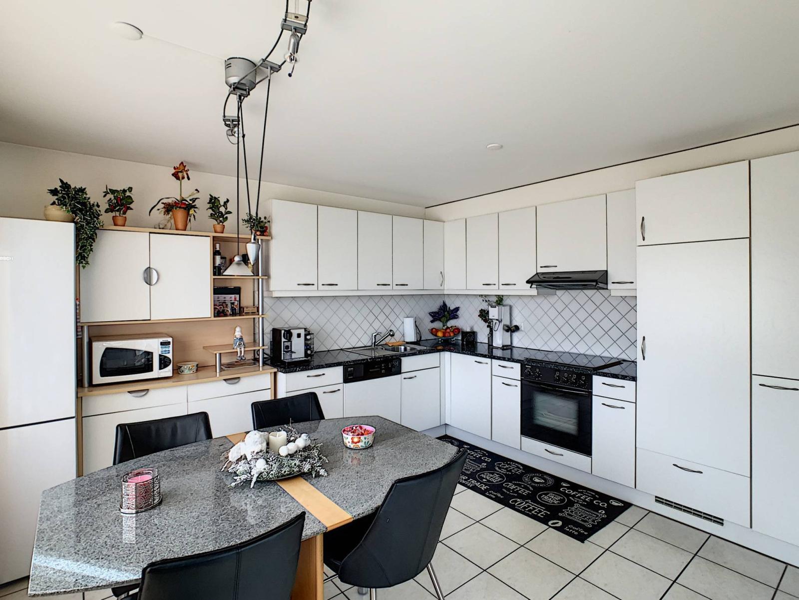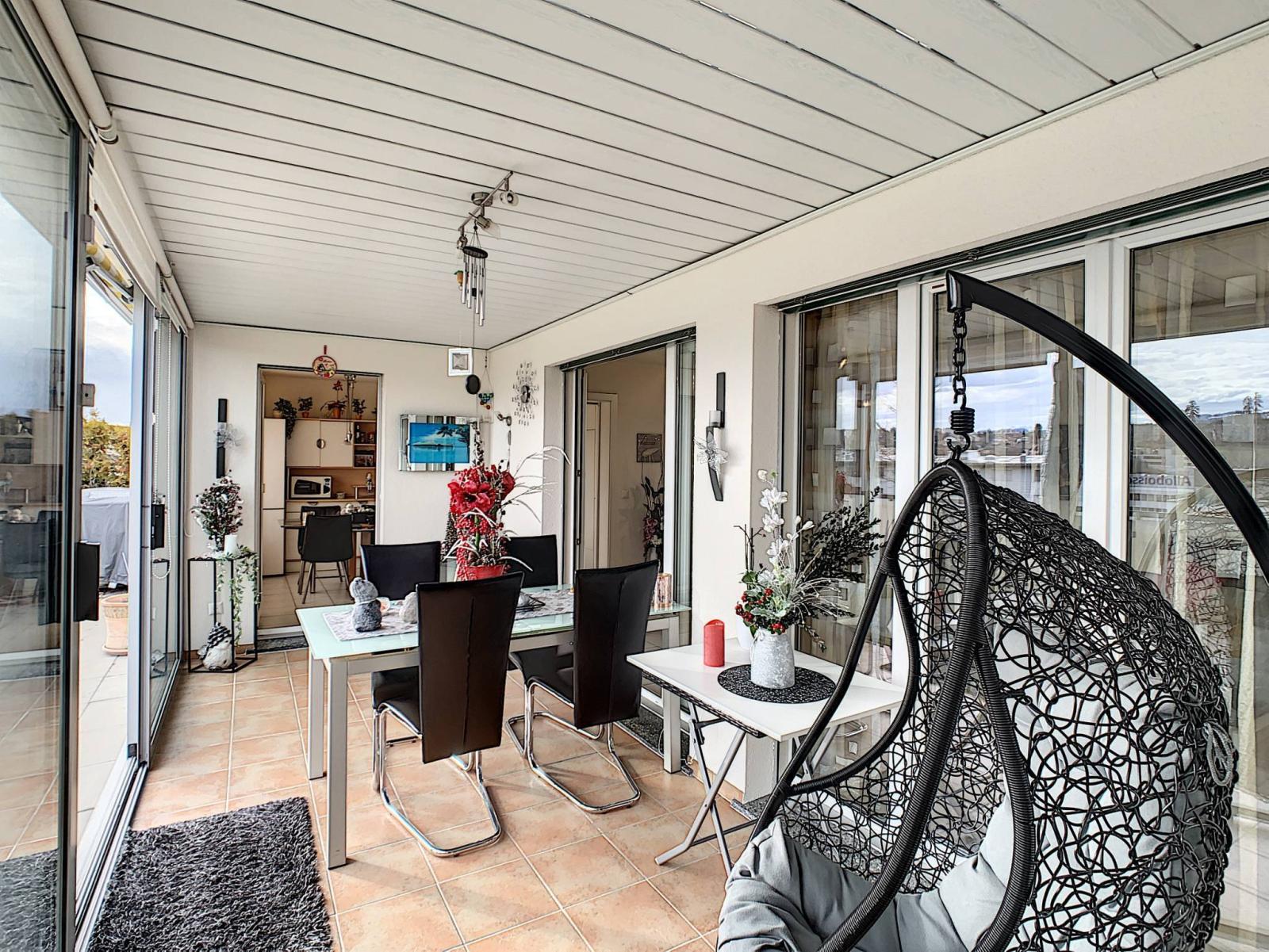 This charming 4.5 room apartment has a total of 107.3 m² of living space, completed by a large terrace of 53.5 m² including 16.5 m² of veranda, thus bringing the weighted surface area to 125.13 m². It is located in a PPE building with elevator, built in 2001.