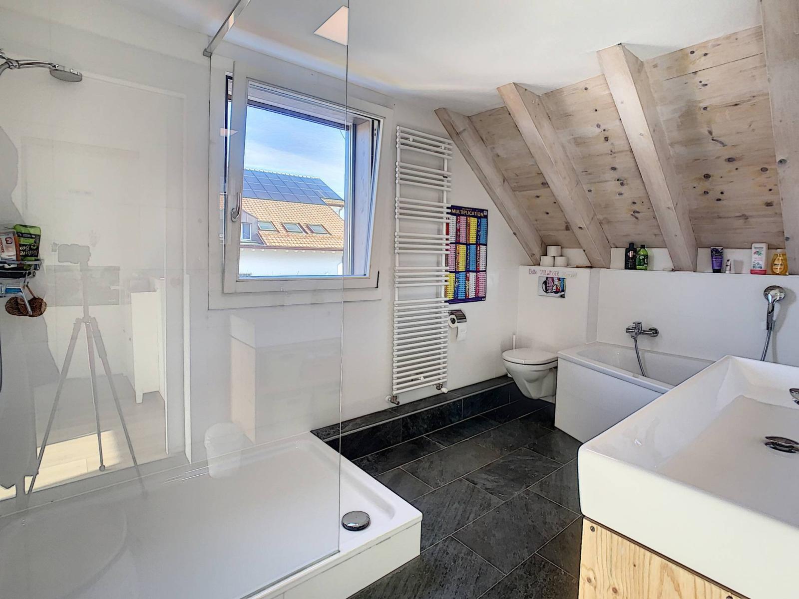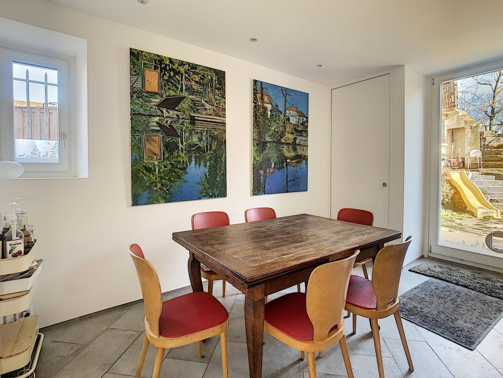 Combining charm and character (house dating from around 1900, referenced note 4 on the monument and site of the canton of Vaud), here is a pretty atypical village house with 8.5 rooms, including 4 bedrooms (three of them are very spacious 14m2 < 15 m2) and 1 office, located close to public transport. The interior skillfully mixes old and modern, with a warm atmosphere. No large open and mixed spaces, but rather many rooms and possibilities of well-defined spaces (pleasant ceiling heights between 2.5 m and 2.63 m depending on the rooms, and even more on the top floor).