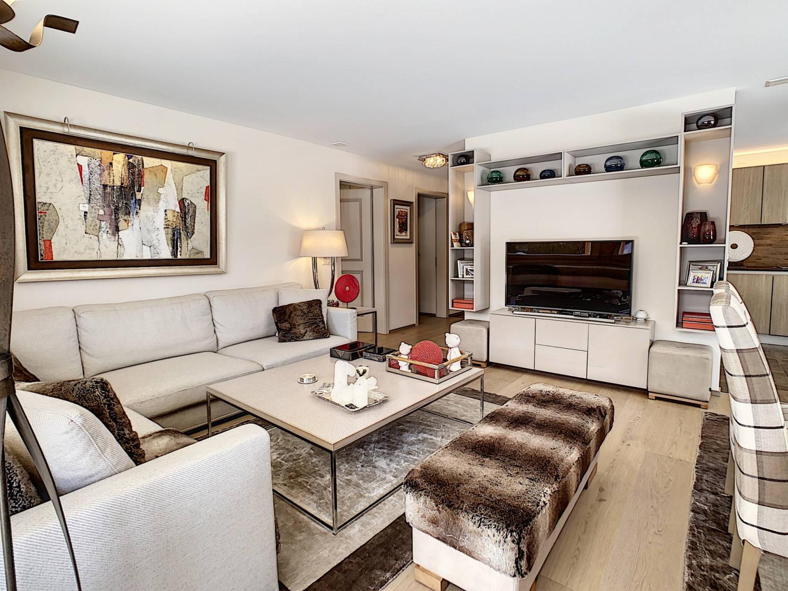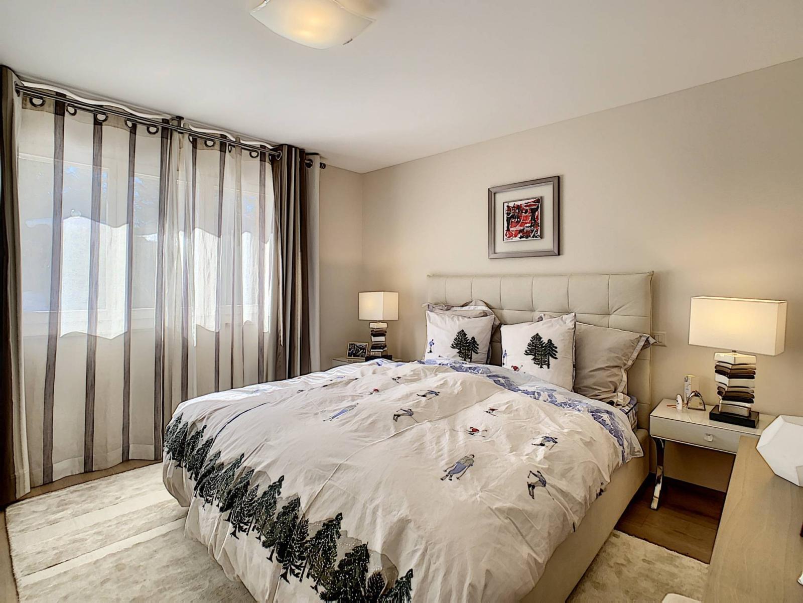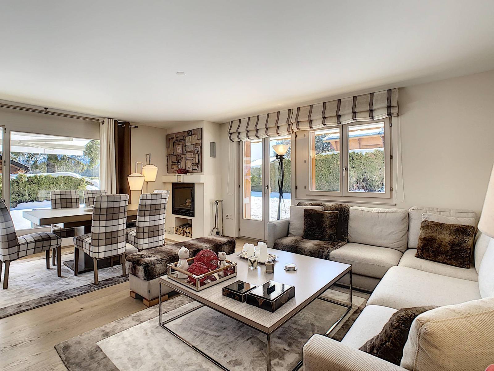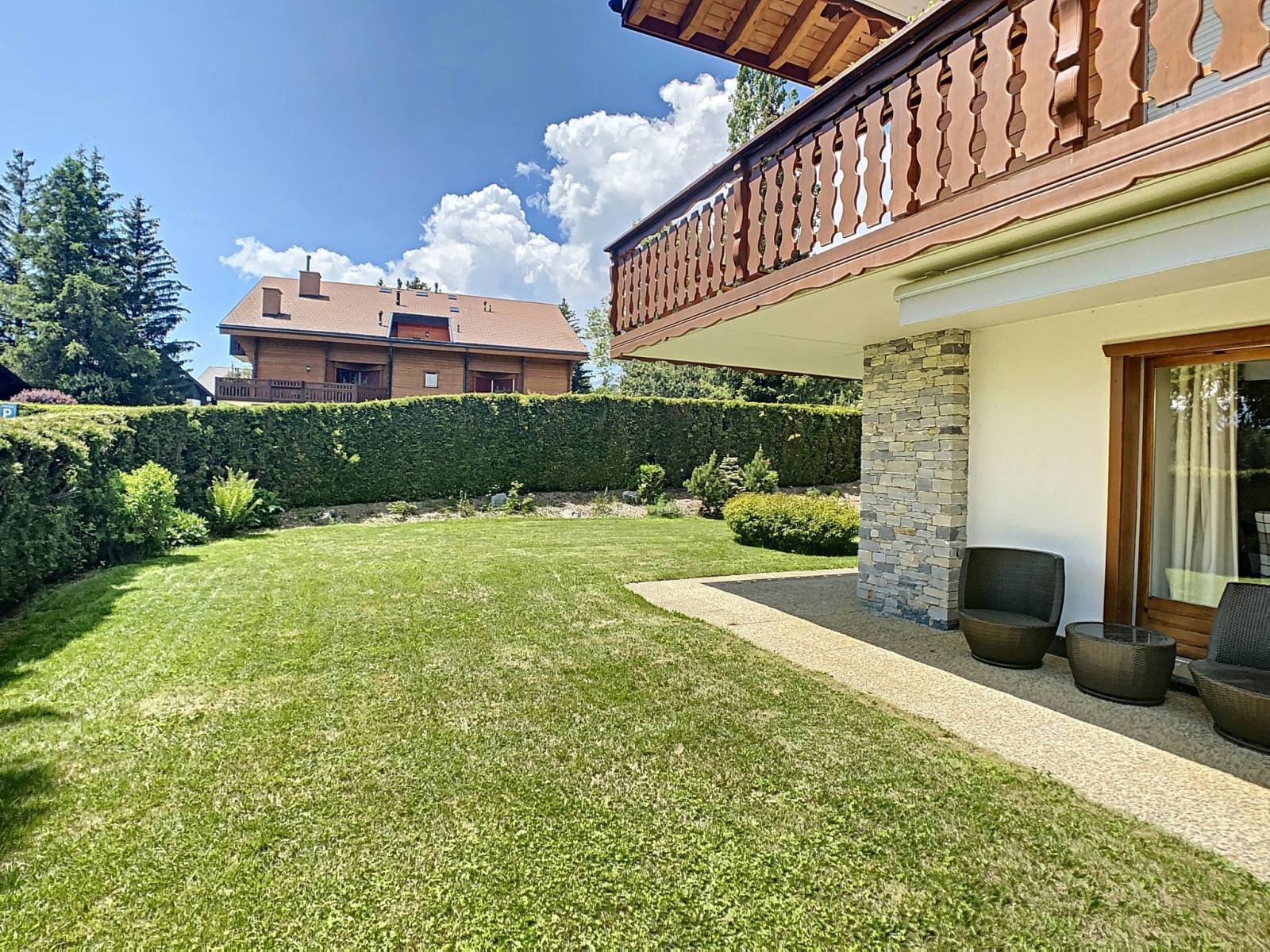 Ideally located in a residential chalet area, this pleasant garden level, not overlooked, is located a seven-minute walk from the resort center. It has a beautiful living space with direct access to the terrace and garden.
