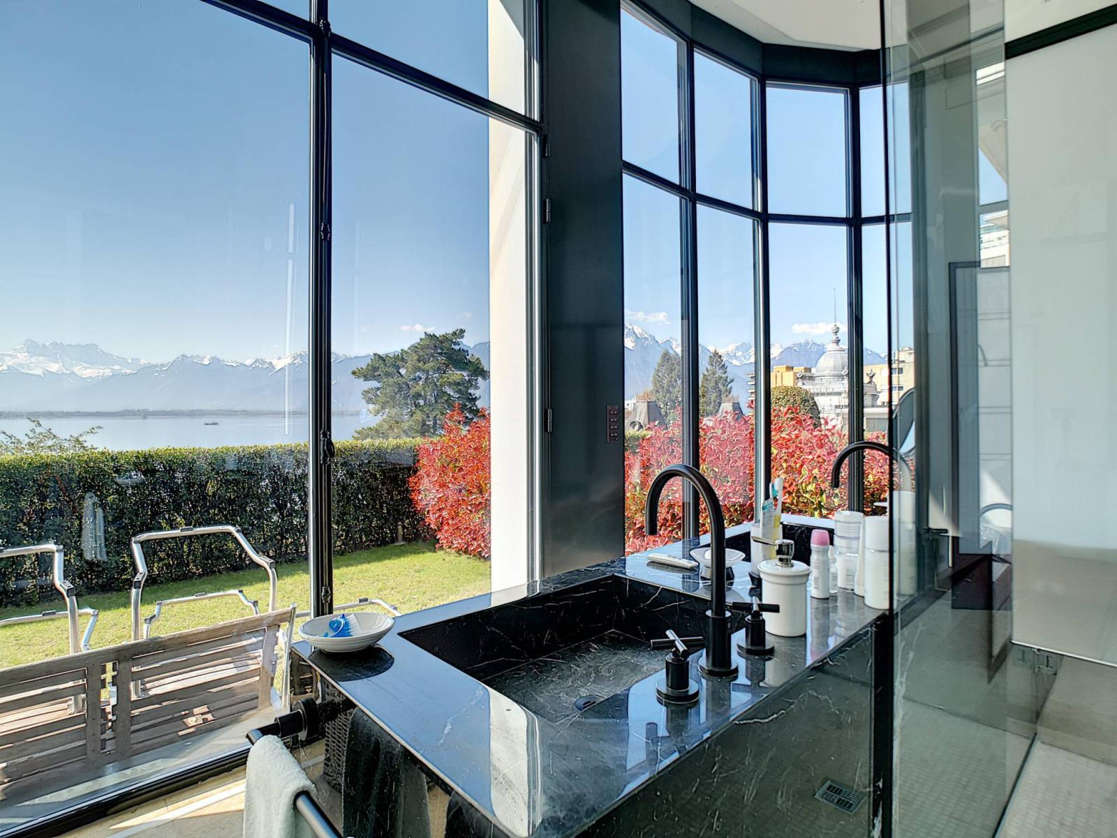 Located in a luxurious condominium called "Le National", it benefits from an exceptional location, with a view of Lake Geneva and the mountains.