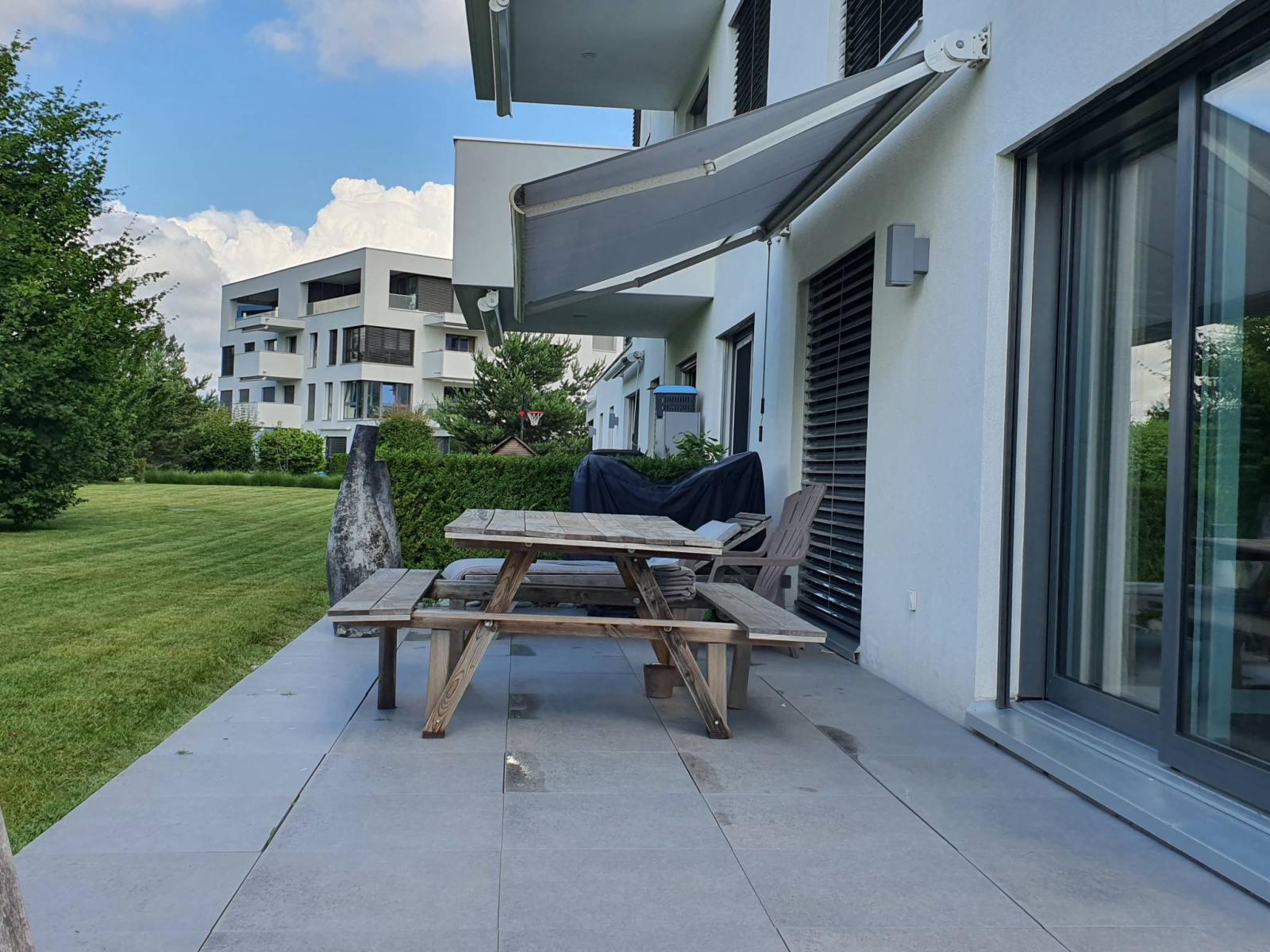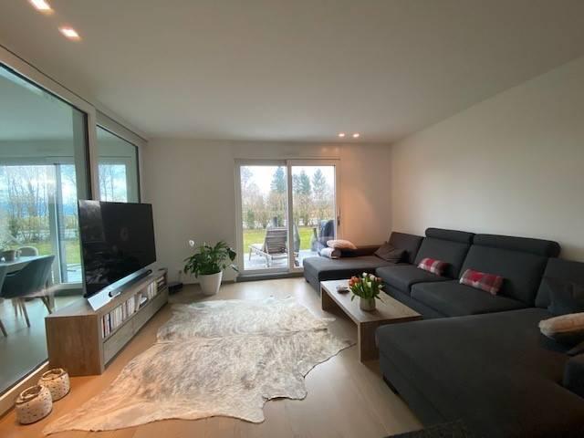 Magnificent 3.5 room apartment with a garden and terrace, close to the village center, the lake, shops (restaurants) and transport (bus).