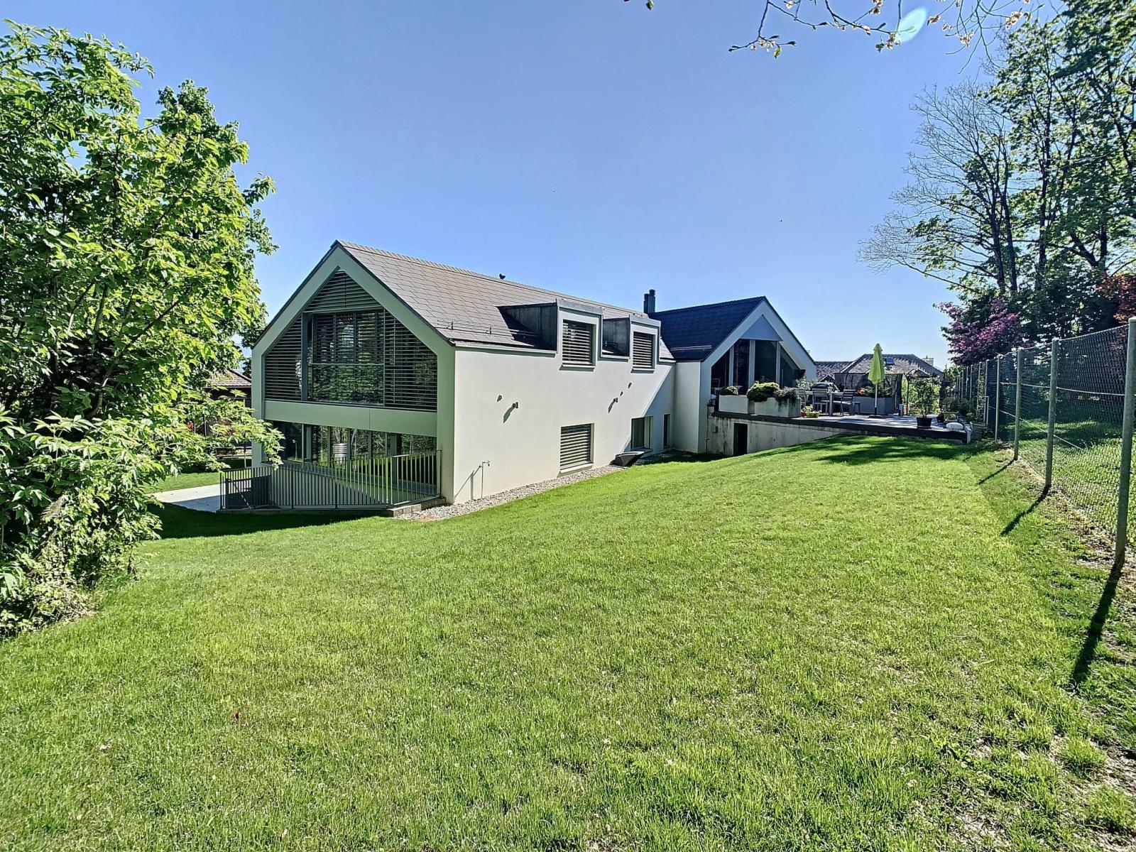 Ideally located at the end of a dead end and surrounded by greenery, this beautiful apartment of 190m² of living space is spread over 4.5 rooms.