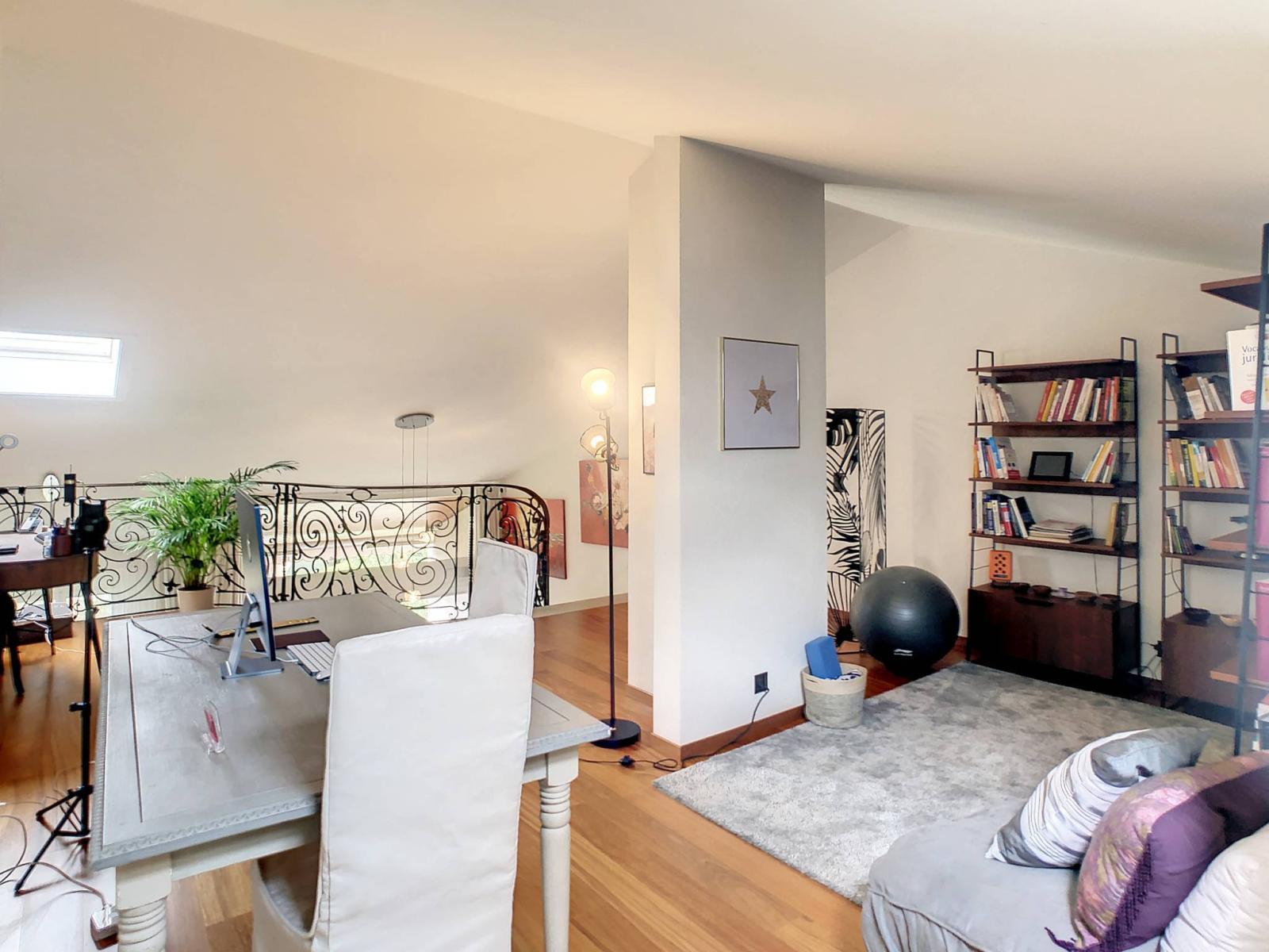 - Fully fitted and equipped kitchen - Very beautiful 40 m² mezzanine serving as an office, 2nd living room and TV corner