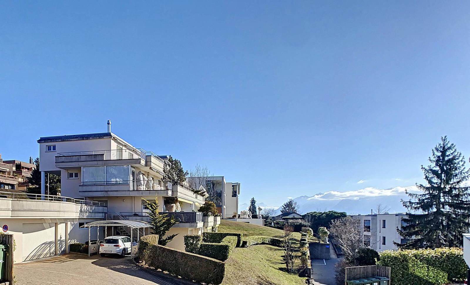 Located in an extremely calm and green environment, the PPE residence "Bleu Azur", composed of 4 lots, is located on a sunny Lavaux hillside overlooking the lake. Close to the A9 motorway and public transport (bus, Conversion train station), it benefits from an unobstructed view of the lake and enjoys a dominant position without suffering the slightest noise inconvenience.