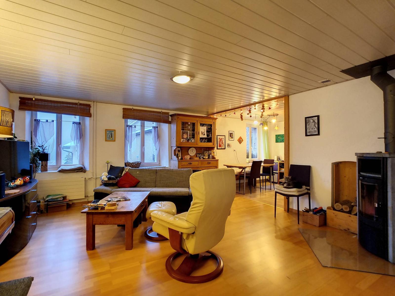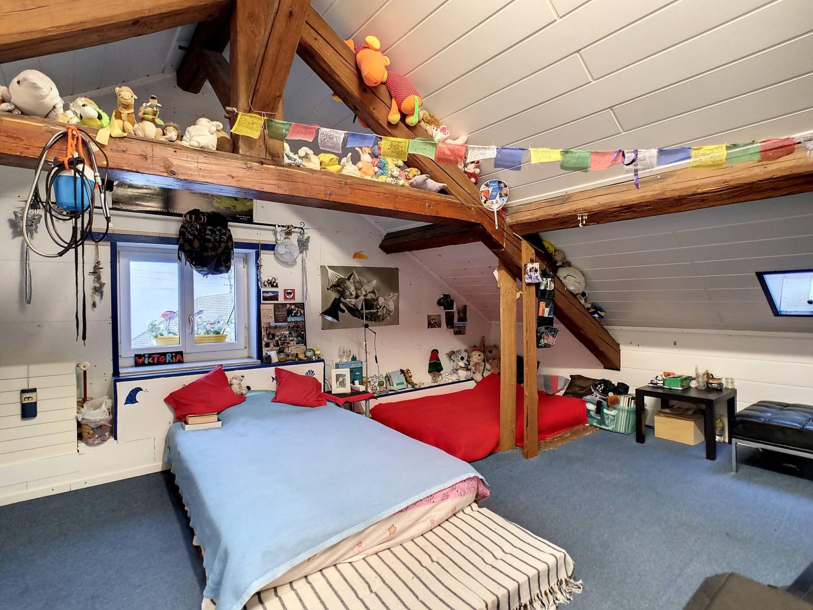 It is in the village of Valeyres-sous-Montagny that this atypical property with lots of character is located. The motorway access is less than 5 minutes away by car and the train stop is 400 meters away to reach the Yverdon-les-Bains train station, in just 5 minutes.