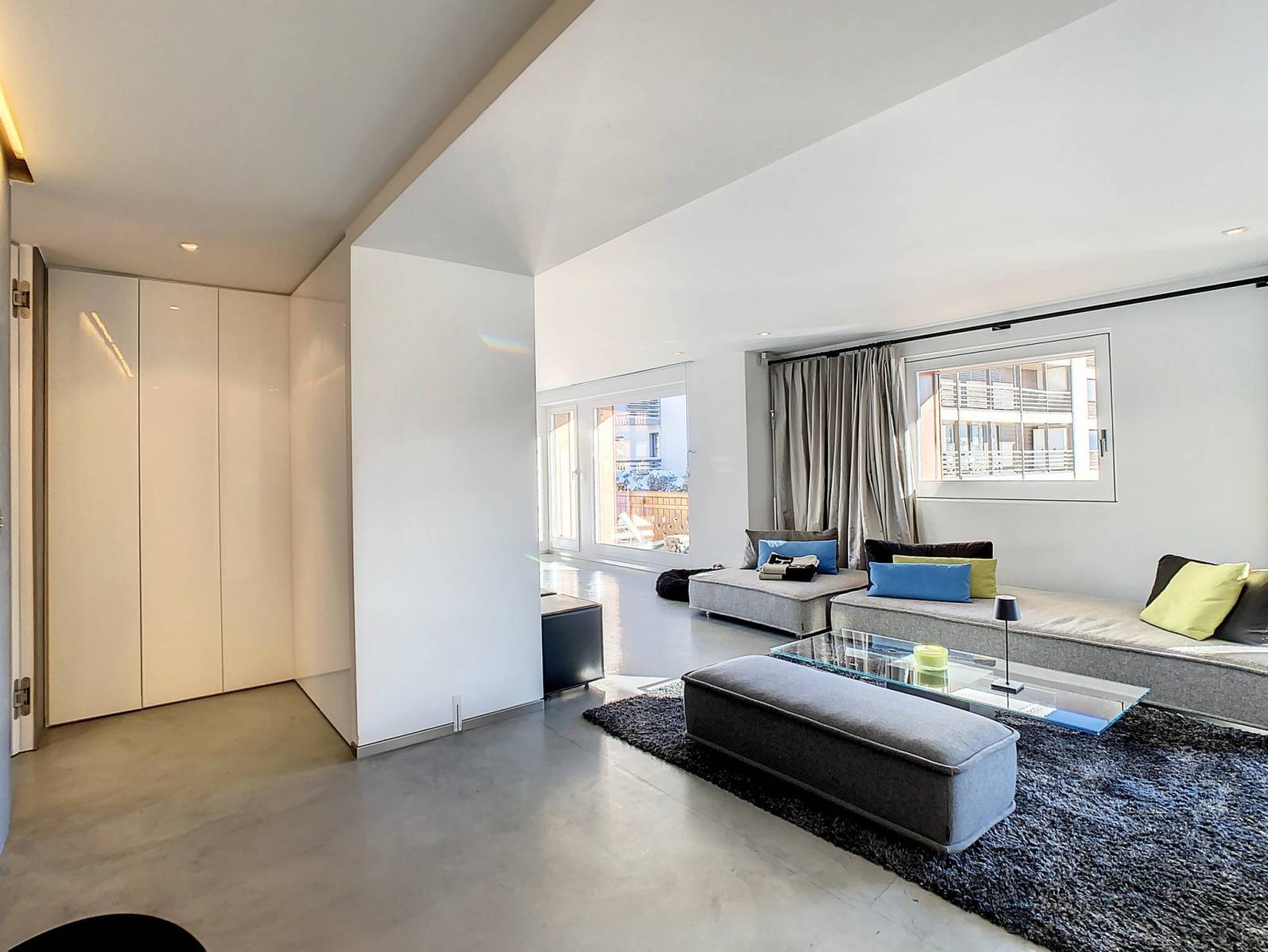 This unique property offers beautiful open and bright spaces as well as a splendid view of the mountains and the center of the resort. It benefits from two bedrooms, including a master of 50m2, and two Italian shower rooms.