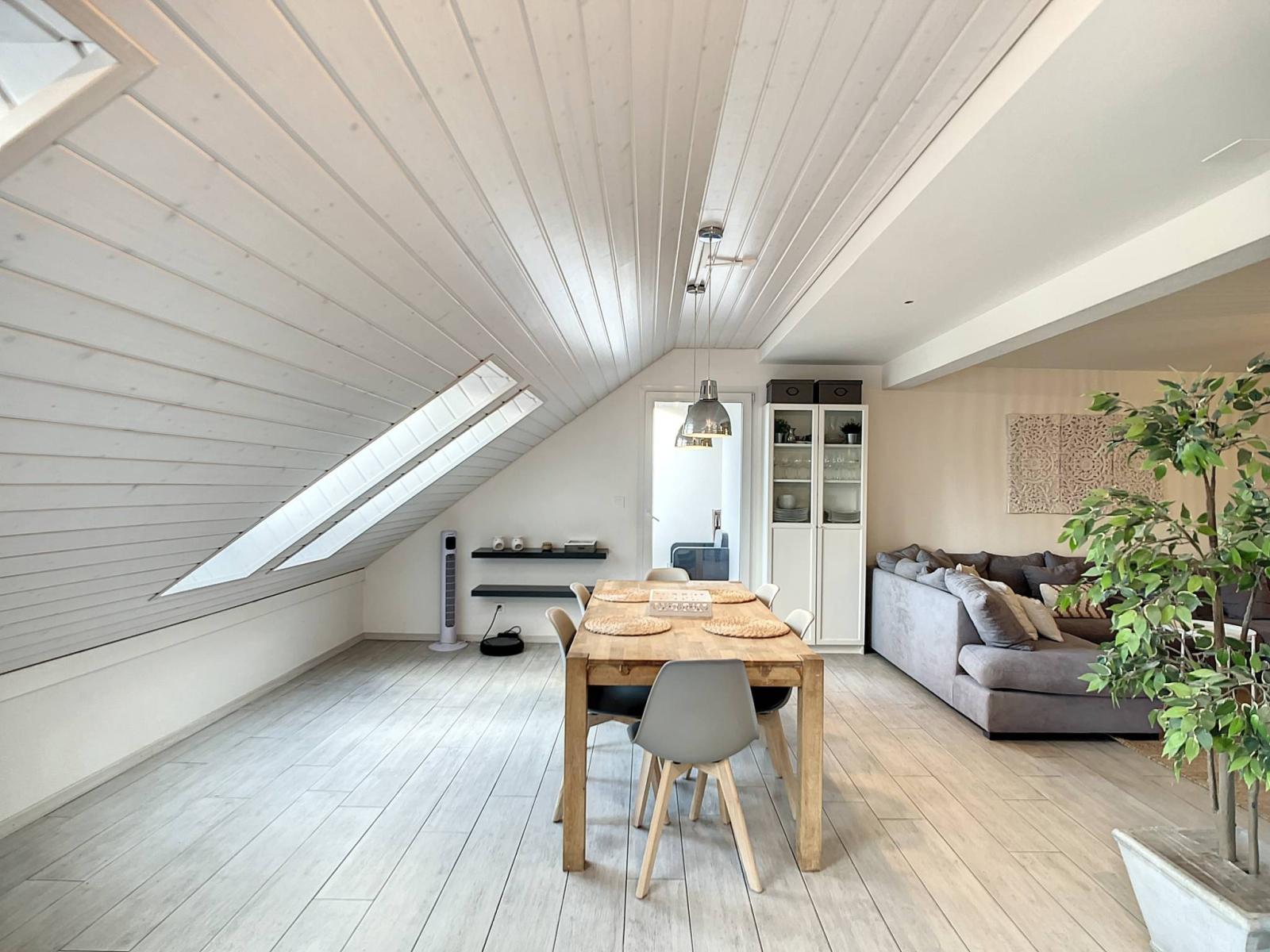 This 3.5 room apartment + mezzanine located on the 2nd and last floor will seduce you with its charm. Benefiting from a beautiful surface area of approximately 140 m², the accommodation is close to new and benefits from quality finishes carefully chosen. It consists of a hall open to the living room, an open kitchen / dining room, a balcony bathtub of approximately 10 m² with its unobstructed view of the Jura, two bedrooms, a bathroom / WC and a shower room / WC. In the attic, there is a large mezzanine of approximately 50 m² offering additional space and can be converted according to your desires / needs. This floor also includes a private laundry room.