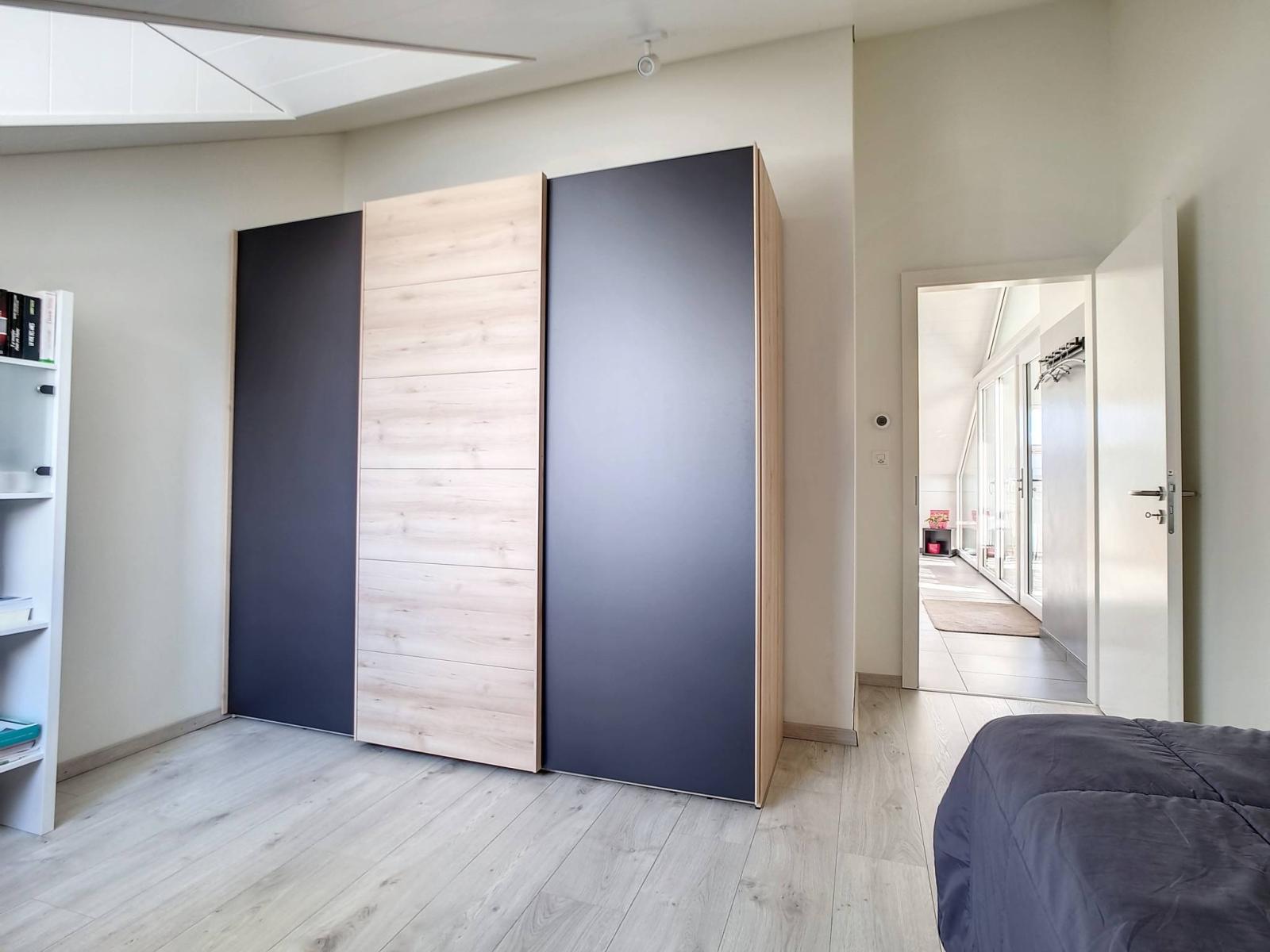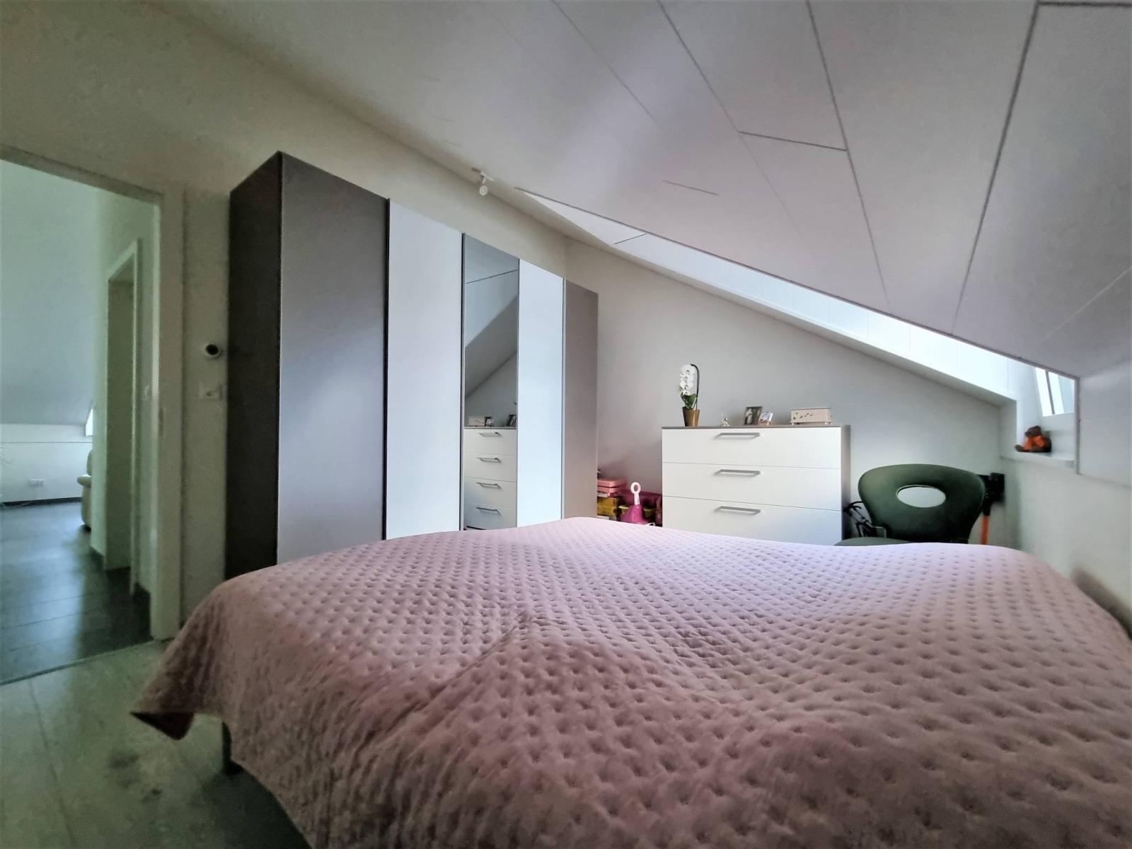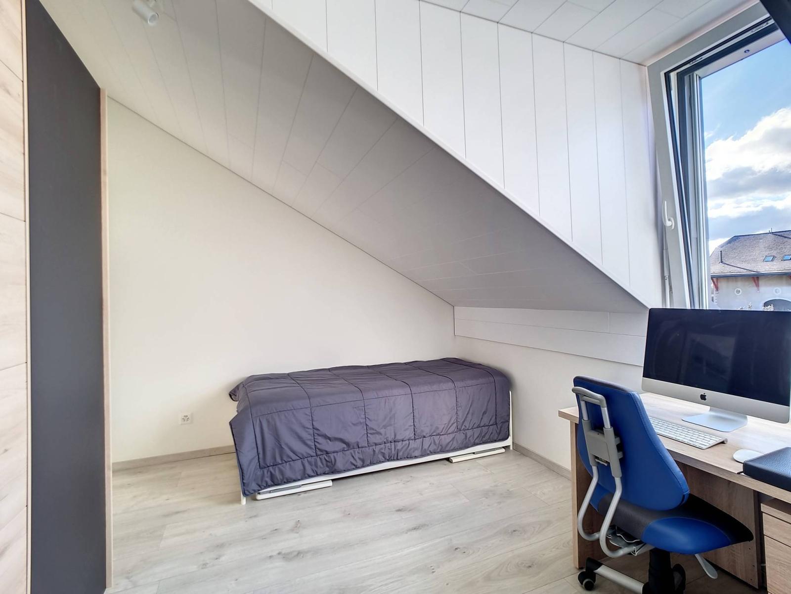Within a human-sized building of 2 floors (lot on the top floor = no elevator), built in 2017, the PPE is presented in the form of 2 small buildings of 6 and 8 lots. The apartment is in the attic, with a large covered balcony (open loggia type) of almost 19 m²! This is organized so that it can remain "open" or "semi-closed" by removable glazing, in order to enjoy it all year round.