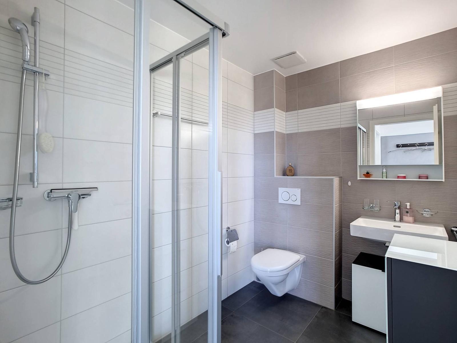 This 3.5 room apartment of good standing, on a single level and in the attic, benefits from 2 bedrooms, a bathroom/WC and a shower room/WC, as well as a spacious main room "modern and favorite" (living room / dining room / fully fitted and equipped kitchen) of 46.30 m² and a nice height under the ridge which makes the attic cozy and not restrictive. The wall of the entrance hall has been nicely personalized in polished concrete.