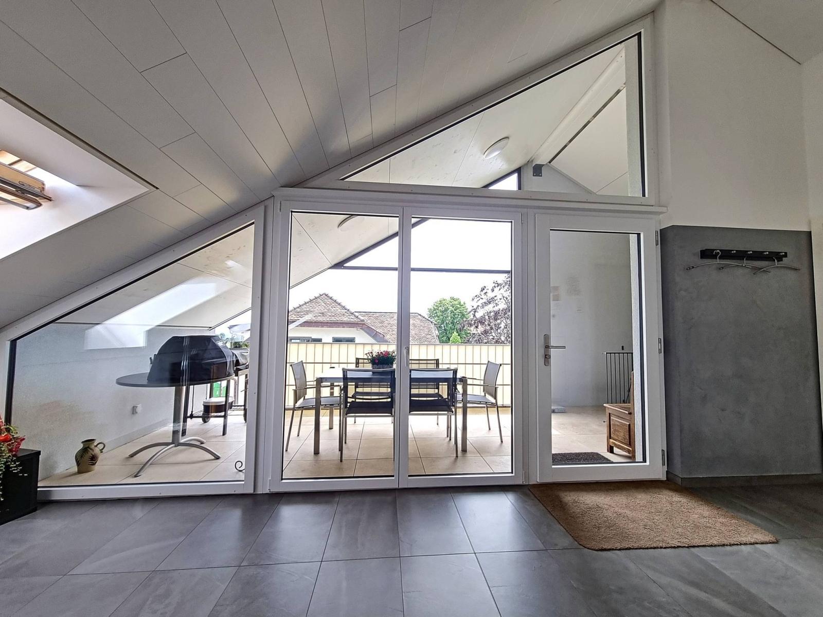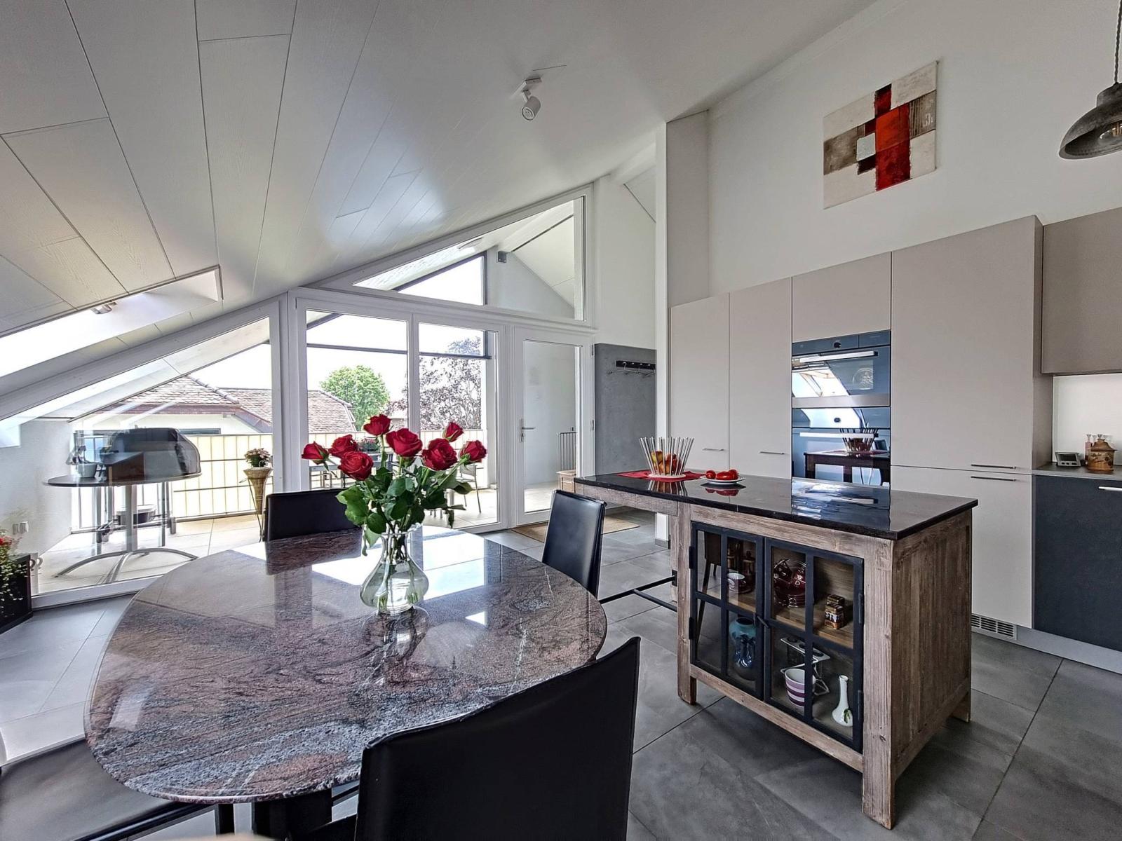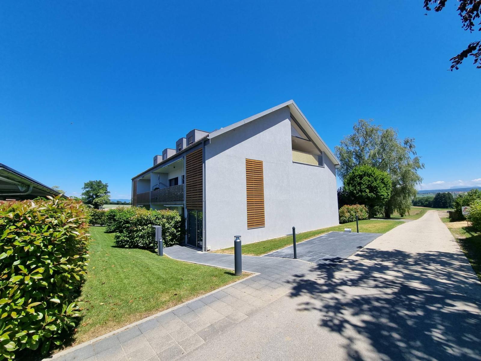Quiet and residential village location, on the outskirts of Cossonay (Allens) and all its amenities (school; culture; transport; shops; pharmacies, etc.), this is a lovely, atypical and modern 3.5 room apartment (92.5 m² weighted) that we invite you to discover. It is gable-ended, on half the floor and therefore open on 3 sides.