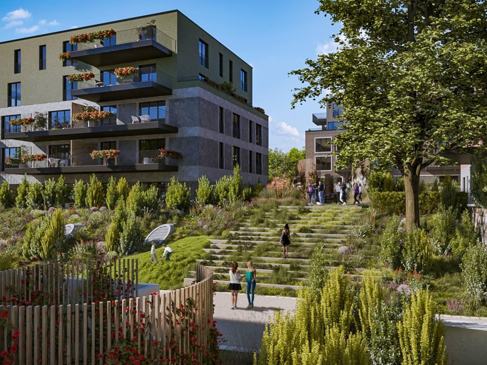 Your advantages: - Modern and high-quality interior fittings, finishes to suit the tenant - Private gardens, terraces or large balconies - Succession of grassy and tree-filled terraced areas - Wooden playground - Site fully accessible by paths and ramps - Visitor parking on the surface - Underground parking for cars, motorbikes and bicycles